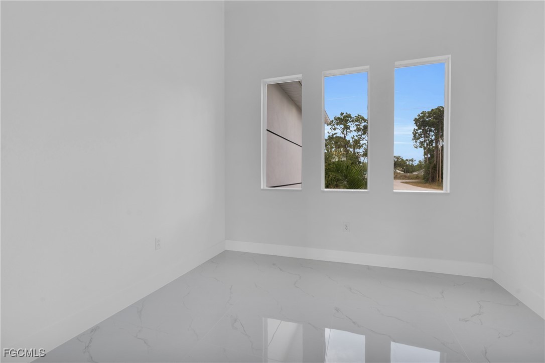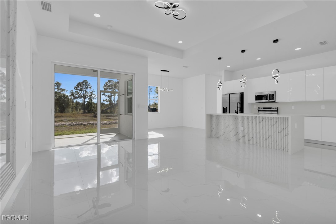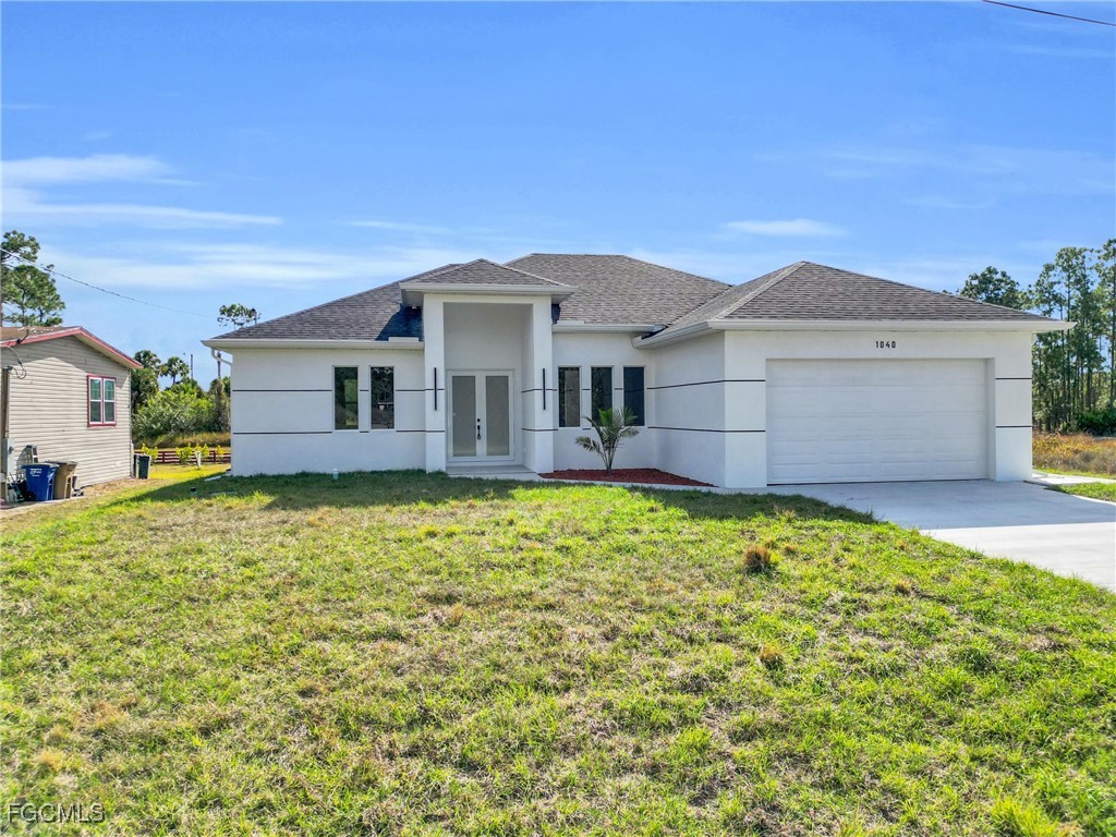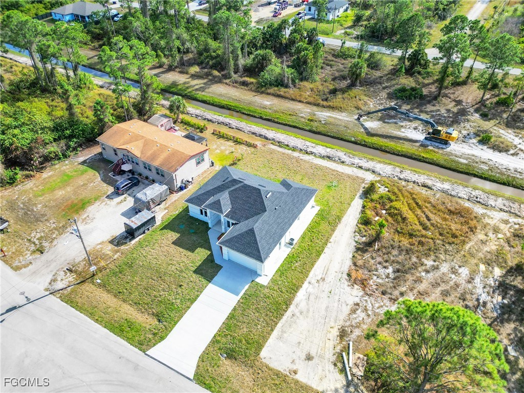 **HOME IS READY TO MOVE IN **Your Dream New Construction Home in Lehigh Acres! Don’t miss this incredible opportunity to own a beautifully crafted waterfront, brand-new residence Lehigh Acres! This thoughtfully designed 3-bedroom, 3-bathroom home with a versatile den offers modern elegance, comfort, and style throughout. Step inside to discover an open-concept layout highlighted by sleek white porcelain tile flooring, soaring 8-foot interior doors, and impact-resistant windows and doors for ultimate peace of mind. The heart of the home, the kitchen, boasts stainless steel appliances, a striking quartz waterfall island, elegant 42” white elegant acrylic cabinets — perfect for entertaining or enjoying everyday meals in style. The luxurious primary suite features a walk-in closet, dual vanity sink, and enclosed by frameless glass doors. All 3 bathrooms are designed with upscale finishes and attention to detail. Additional highlights include a dedicated office/den, a covered open lanai, 2-car garage, and energy-efficient A/C system with individual returns in each room for better airflow and temperature control. NO HOA fees NO FLOOX ZONE and a 1-year structural warranty included for your peace of mind. This home is the perfect blend of function, luxury, and location. Schedule your private showing today — your new beginning starts here!