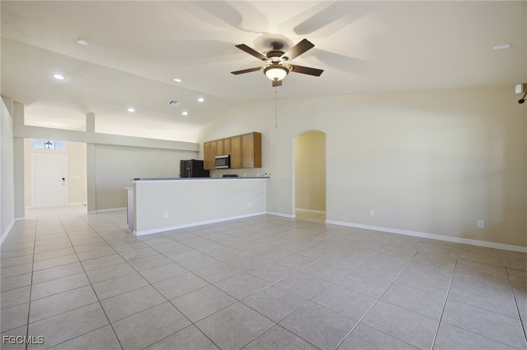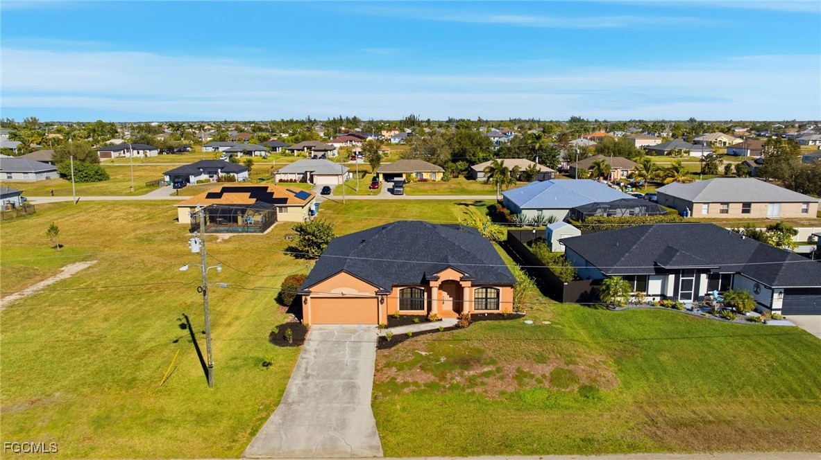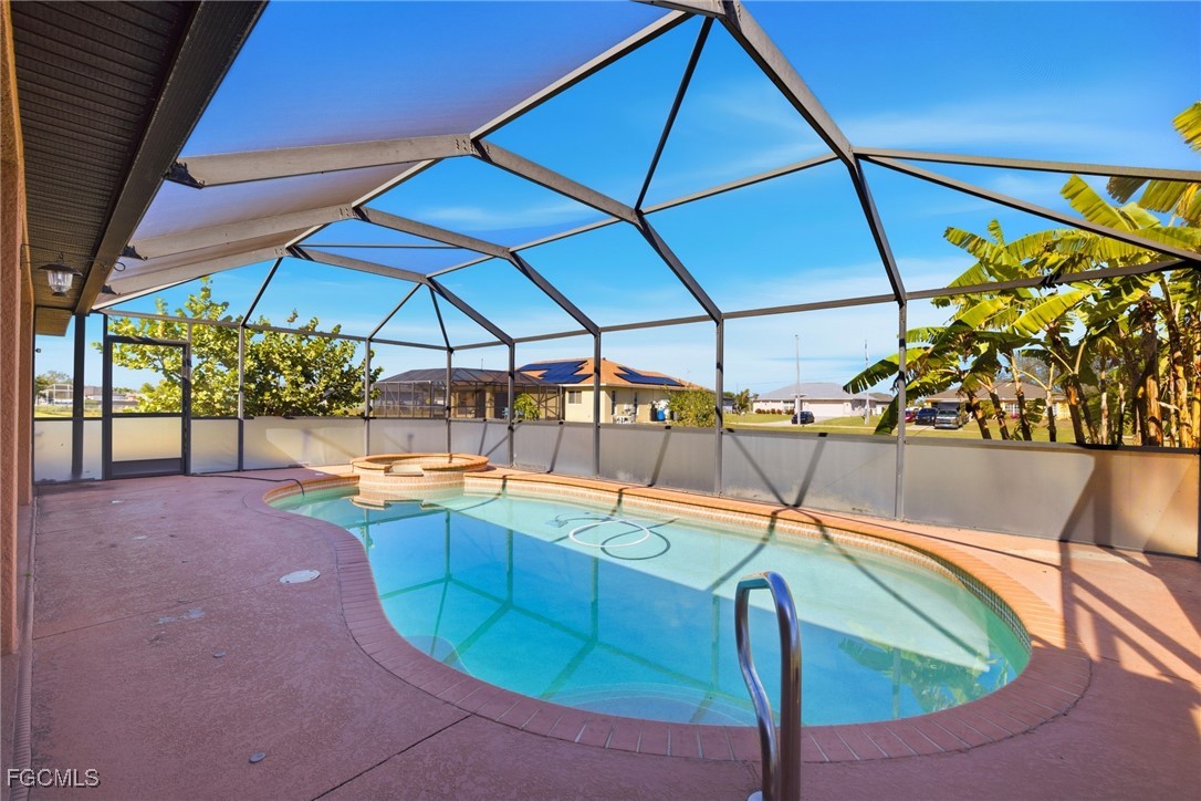 Well-maintained 4-bedroom, 2-bath CBS-constructed pool + spa home offering 2,098 square feet under air with a bright, open layout and excellent use of space. A spacious great room is complemented by separate formal living and dining areas, creating flexibility for both everyday living and entertaining. Cathedral ceilings and abundant natural light enhance the interior, while double sliders from the great room open directly to the covered lanai. The kitchen is generously sized and features upgraded wood cabinetry with 42-inch upper cabinets, recessed lighting, tile flooring, and a comfortable eat-in dining area. Tile continues through the main living areas, while newer LPV flooring has been installed in the formal living room, formal dining room, and all bedrooms. An inside laundry room adds everyday convenience. The primary bedroom is well proportioned and includes double sliders to the large under-truss lanai, two walk-in closets, and a well-appointed bath with dual vanities, a soaking tub, and a separate walk-in shower. A guest bathroom also functions as a pool bath, ideal for outdoor living and entertaining. Outdoor space is a standout feature, with a large screened-in oversized pool and spa providing ample room to relax or host guests. A newer roof installed in 2023 offers added peace of mind. The property qualifies for a FEMA Letter of Map Revision, providing the option to be removed from the flood zone. The yard also includes established fruit trees, including citrus, banana, and sugar cane, adding character and function to the outdoor space. Located in a rapidly growing Northwest Cape Coral corridor, this home is well positioned near an expanding network of parks, recreation, and future development. The Burnt Store boat ramp is approximately 2 miles away, making it ideal for boating and fishing enthusiasts. Tropicana Park, about 3 miles away, is currently under construction and planned to include kayak launch, beach area, fitness stations, picnic facilities, and community gathering spaces. Joe Stonis Park (2.6 miles) offers walking trails, courts for tennis, pickleball, shuffleboard, playgrounds, and picnic areas, while Sirenia Vista Park (2.9 miles) provides kayak access, natural preserves, and popular manatee viewing areas. Jim Jeffers Park and Oasis Elementary North Charter School are both about 2 miles away, with additional schools and the North Regional Library within roughly 2.5 miles. Publix, banks, restaurants, and everyday conveniences are all within approximately 2 miles. Future developments such as Seven Islands and the Cape Coral Grove are expected to bring expanded waterfront amenities, dining, recreation, and commercial growth, further enhancing long-term appeal in this area.