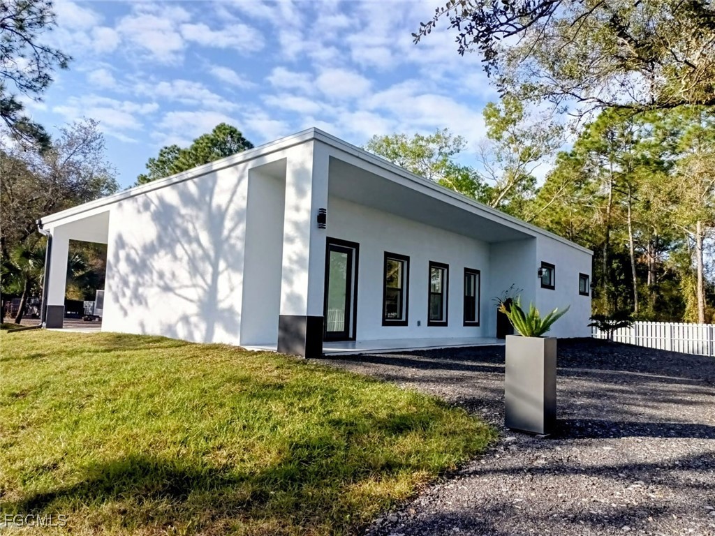 Peaceful, quiet and private cornet lot of 1.25 acres fully fenced. This charming 2 bedrooms , 2.5 bathrooms and all accentuated by high-end finishes, You have two entrances into the property with a horseshoe driveway and a gate on each side ensuring privacy and security. You are met with a lot of natural light with the spacious and open living room. This well-designed homes feature impact-resistant windows and doors for both storm protection and noise reduction, and concrete block construction. A unique opportunity! New Custom Home “Imagine " living in a luxurious oasis in Montura Ranches Florida , featuring a stunning Property built. Two master suites offering a closet in each , and a bright bathroom with a vanity, and a shower . Additional highlights include the kitchen with an island and stainless steel appliances, porcelain polished 24x48 tile through out , covered front and back porches also with tile, wood cabinets with soft close,Quartz countertops, high-end lighting and tall wooden base boards. This property provides complete privacy. Embrace the tranquil lifestyle this exceptional home offers, where nature meets modern luxury .PROPERTY IS FINISHED & READY FOR THE NEW OWNER!!