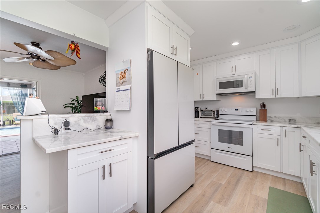 One of Cape Coral's Hidden Gems with A Much Desired SW Rear Exposure. Three Bedroom, Two Bath, Completely Remodeled. New Kitchen, All New Appliances, New Cabinets, Beautiful Vinyl Plank and Tile Flooring Throughout, Gorgeous Crown Molding and A Truly Hugh Lanai Area with An In Ground Pool. Absolutely Perfect for Entertaining! This Property Is Within Easy Walking Distance to Downtown Cape Coral and All It Offers. Here Is Your Opportunity to Have Your Own Piece of Paradise!