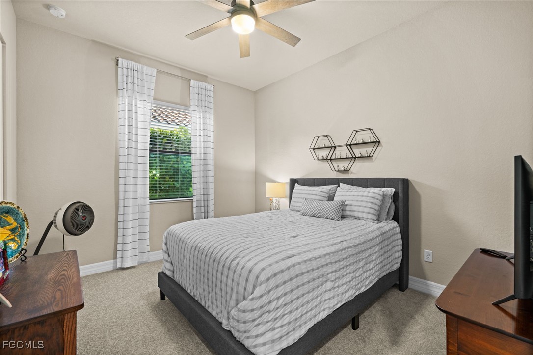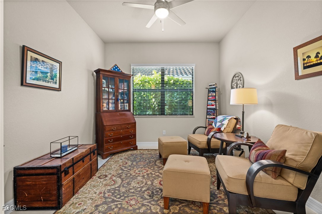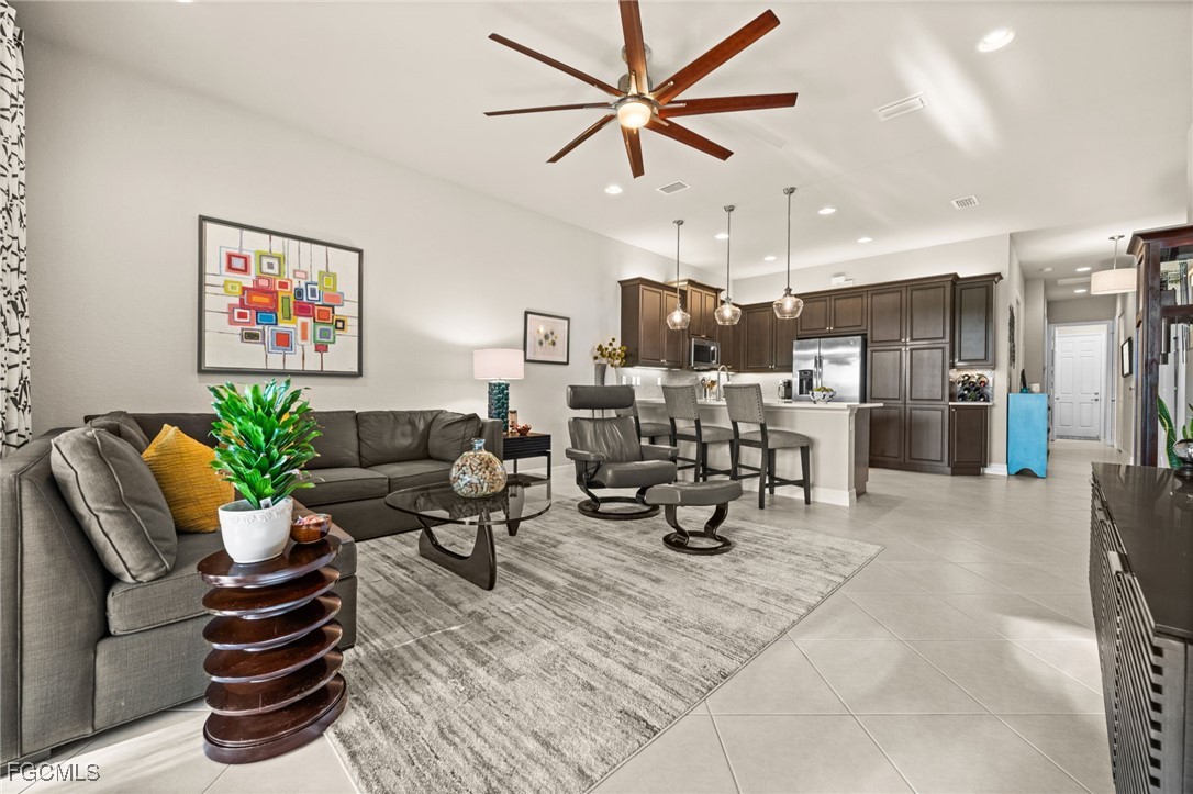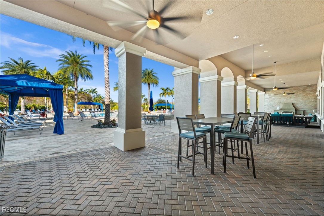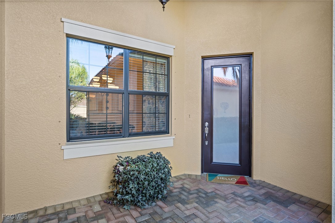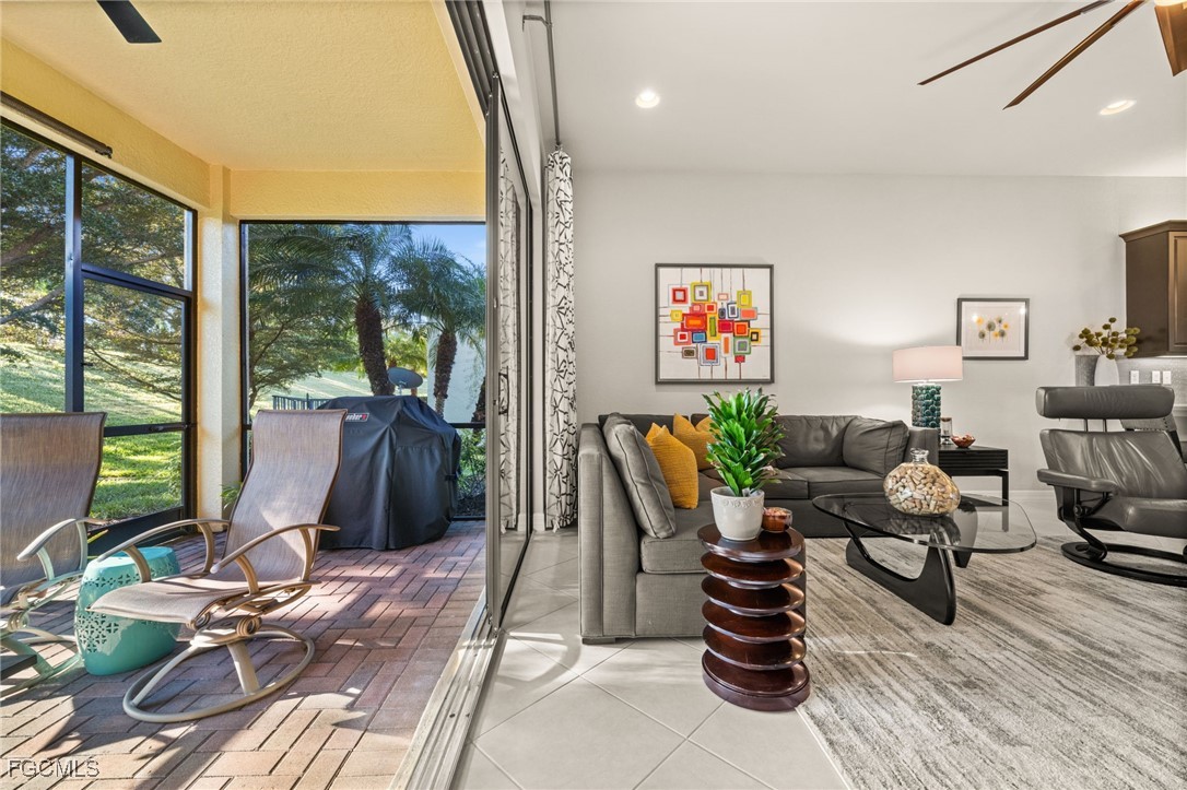 Beautifully appointed villa located in the prestigious Marina Bay community, offering an elevated living experience that will impress even the most discerning buyer. This home shows like a model, featuring a stunning custom wood accent wall and tasteful designer wallpaper that create a warm yet sophisticated ambiance throughout, ideal for buyers seeking a move-in-ready residence with designer finishes. The open-concept kitchen is both stylish and functional, boasting quartz countertops, a glass tile backsplash, and a breakfast counter ideal for casual dining. The kitchen flows seamlessly into the eat-in dining area, perfect for hosting family and friends and entertaining. The flexible floor plan includes two bedrooms plus a den with French doors, making it well suited for full-time residents, seasonal owners, or those needing a home office or guest space. A cozy paver walkway leads to the inviting front entrance, adding to the home’s charming curb appeal. Additional highlights include a new dishwasher, microwave, washer and dryer, newer carpeting in the bedrooms, a 50-amp generator connection, and a whole-house surge protector—features that provide peace of mind. This home is impeccably maintained, super clean, and thoughtfully designed for comfort and ease. Marina Bay’s resort-style amenities are outstanding and appeal to active lifestyles and social buyers alike, offering two swimming pools, a kids splashpad, a billiards room, fitness center, indoor basketball court, outdoor basketball, pickleball and tennis courts, card room, aerobics studio, and a party pavilion, perfect for both daily enjoyment and entertaining guests. HOA dues include roof, exterior land & maintenance along with exterior painting. Ideally located in the highly desirable Treeline Corridor, Marina Bay provides exceptional convenience to shopping, dining, entertainment, medical and Southwest Florida International Airport, making it an excellent choice for professionals, frequent travelers, and seasonal residents. A rare opportunity to enjoy luxury, comfort, and a lock-and-leave lifestyle in one of Fort Myers’ most sought-after communities—this villa is truly a must-see.