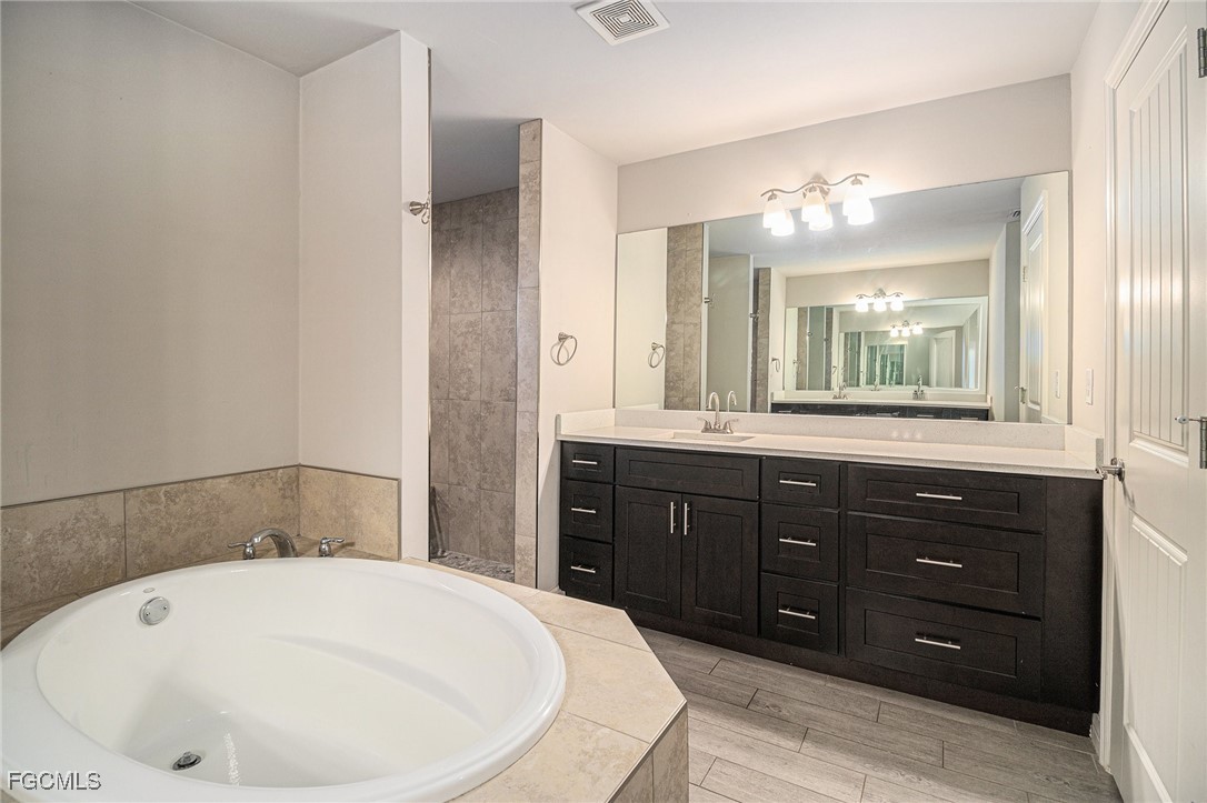 Welcome home to this beautiful 3-bedroom, 2-bath home built in 2019! From the moment you step inside, you’ll love the wood-style tile flooring that runs throughout, giving the home a clean and modern feel. The kitchen is a true standout with stylish cabinets, stainless steel appliances, gorgeous stone countertops, and a large island that opens to the living area—perfect for cooking, gathering, and entertaining friends and family. The owner’s suite is a relaxing retreat featuring two spacious walk-in closets and a spa-like bathroom with a soaking tub and a walk-through shower. The guest bathroom features matching tile work, adding a polished touch throughout the home. Enjoy indoor-outdoor living with sliding glass doors from both the living room and owner’s suite leading to a large covered patio. Whether you screen it in or add a pool enclosure, this space is ready to become your favorite spot to unwind. This move-in-ready home is just waiting for you to make it your own!