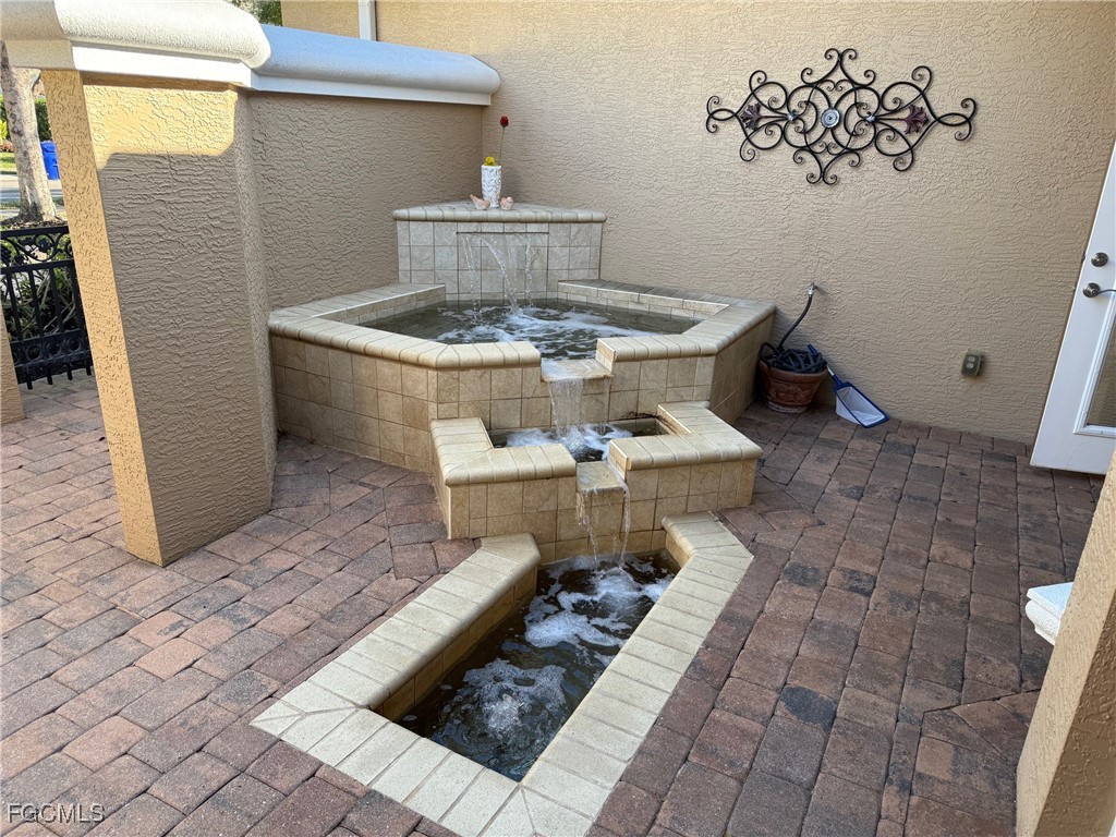 Embrace luxury and tranquility with a lake view in this residence nestled in the prestigious gated enclave of McGregor Reserve, one of Southwest Florida’s most sought-after communities. Perfectly positioned on a small lake with a fountain. This Home was designed to optimize the beautiful view of the fountain and the birds that come to visit. This home is on a 0.28 acre lot. NOT IN A FLOOD ZONE. This stunning home offers built-in features, 3 bedrooms all with walk-in closets, a large den with enough space for a pull- out couch, 3 full baths, a hot tub positioned in the front of the house with a waterfall feature and privacy wall, and an expanded 2 car garage with built in storage. From the moment you step in the door, you are greeted with a water view, premium tile and hardwood floors. The kitchen showcases quartz countertops, Bosch stainless steel appliances, decorative back splash, and ample custom wood cabinetry. The seamless indoor-outdoor flow is highlighted with elegant sliding doors from the living area into the spacious lanai designed for entertaining and ultimate relaxation. Relax on this spacious lanai and enjoy the water view and bird watching. Additional premium features include an updated tile roof (2025), outside home repainted (2024), master bedroom has spacious his and her walk-in closets, hurricane proof windows and sliding doors. McGregor Reserve enchants with its distinctive architectural diversity, charming mahogany tree-line streets and sidewalks that are complemented by the remarkably low HOA fees. Ideally situated near hospitals, vibrant dining, upscale shopping, entertainment venues and the historic downtown district of Ft Myers. This exquisite home offers the perfect blend of convenience and upscale living.