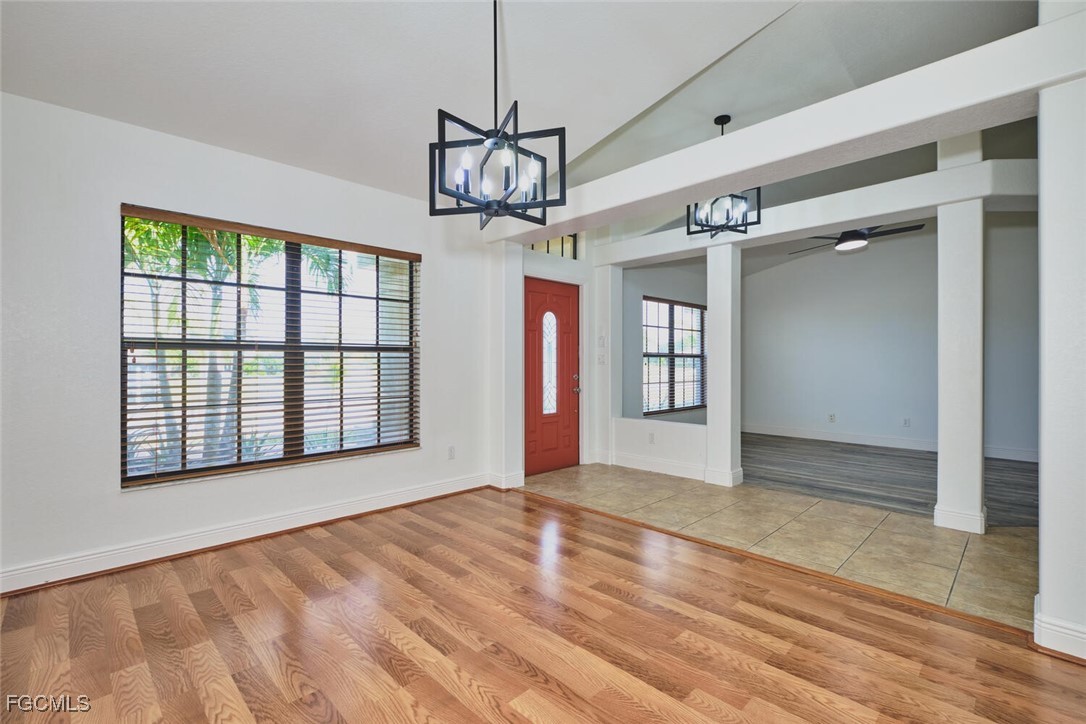DRASTIC PRICE IMPROVEMENT! While New Construction Shrinks Rooms, This One Actually Makes Sense. You've toured the new builds. Tiny bedrooms that barely fit a bed. Living rooms with no logical place for a TV. Kitchens where two people cooking feels like a crowd. They're cutting corners on space to maximize profit, and you're paying new-construction prices for layouts that don't work. This is different. Built by Mercedes Homes in 2006—back when builders weren't in a race to see how small they could make rooms—this 2,237 square foot home in NW Cape Coral was designed by people who understood how families actually live. Vaulted ceilings throughout give it that estate home feel the moment you walk in. Rooms that are actually room-sized. Walls where you can hang a TV without an engineering degree. The family room is where you'll understand why this home works and new construction doesn't. It's big, open, and already wired for surround sound—because back in 2006, Mercedes Homes actually thought about how people live. There's a logical place for your TV. Room for a sectional that fits your whole family. Space to move without everyone sitting on top of each other. Vaulted ceilings make it feel even more expansive. Here's the best part: it's been completely renovated to like-new condition. New roof. Fresh paint inside and out. Every light fixture, every fan, every plumbing fixture replaced. All new stainless appliances and disposal. The garage floor was refinished. It's been fully inspected with everything repaired or replaced. You're getting the quality and space of a well-built home with the condition of new construction—without the premium price or cramped floor plan. The kitchen makes sense. Wood cabinets, granite counters, tile backsplash, and actual counter space to work with. Breakfast nook for everyday meals, formal dining room for when it matters. Master suite with garden tub, separate shower, and closets you can walk into. Four real bedrooms—not "bedrooms" where you're choosing between a bed and a dresser. Room for growing families, blended families, parents moving in, or just having an actual guest room and home office. The flex room gives you options: den, office, workout room, playroom, craft space—whatever your life needs. Long screened lanai for Florida living. Pool bath already in place with plenty of room to add a pool when you're ready. And at a quarter-acre, you've got a proper yard without signing up for weekend landscaping marathons. This is NW Cape Coral where you get space and privacy without feeling isolated. Mercedes Homes built it right. We brought it to like-new condition. Now it's ready for someone who's tired of compromising on space just to get "new." Come see why 2,237 square feet from 2006 feels bigger and works better than 2,500 square feet built last month.