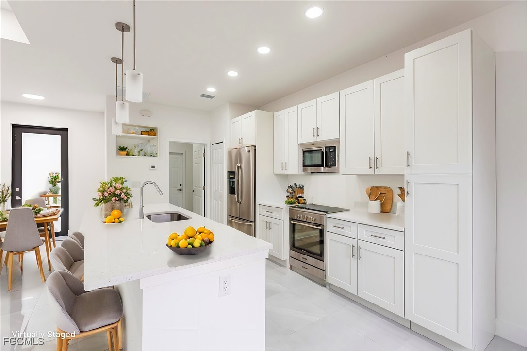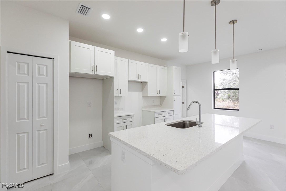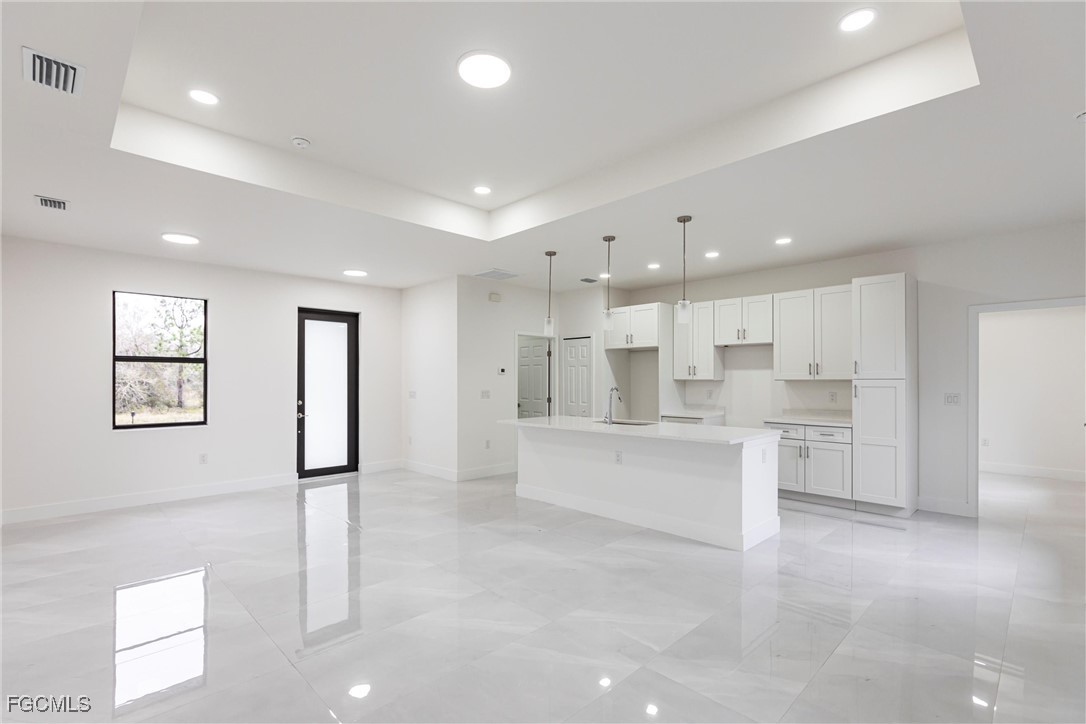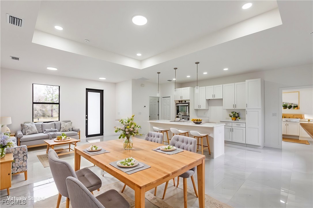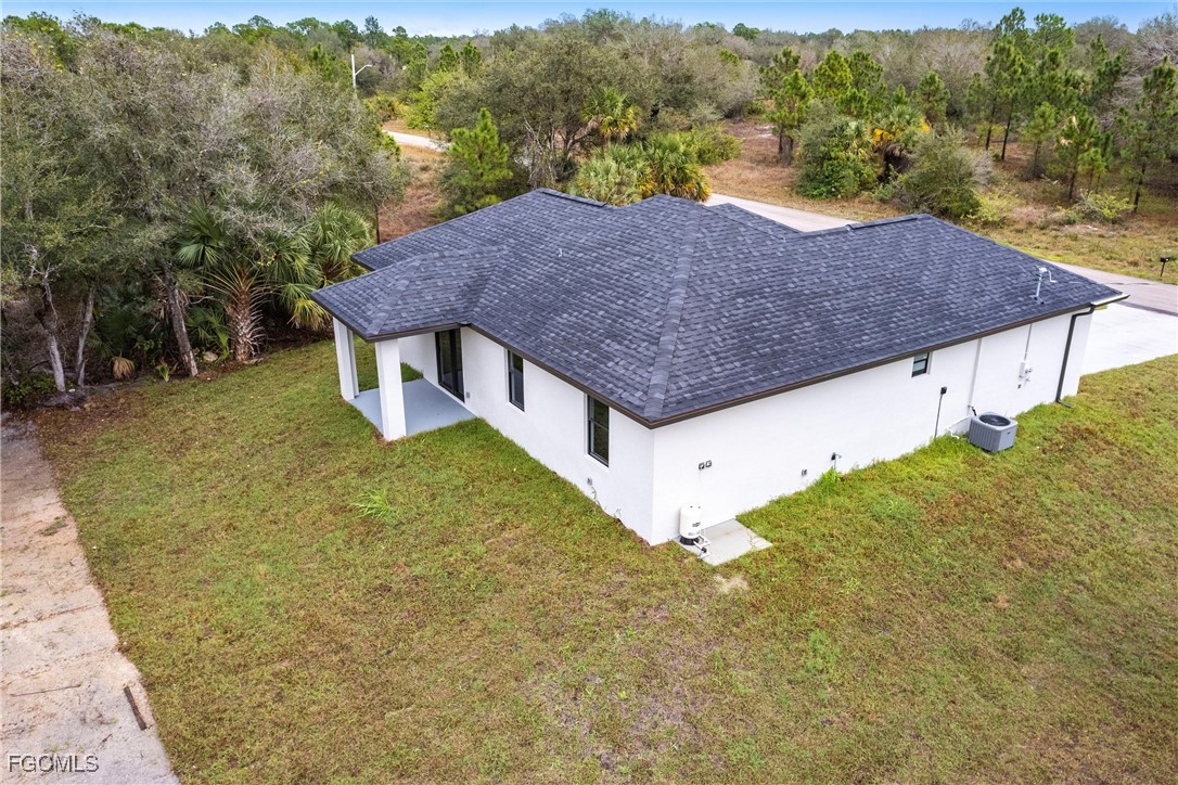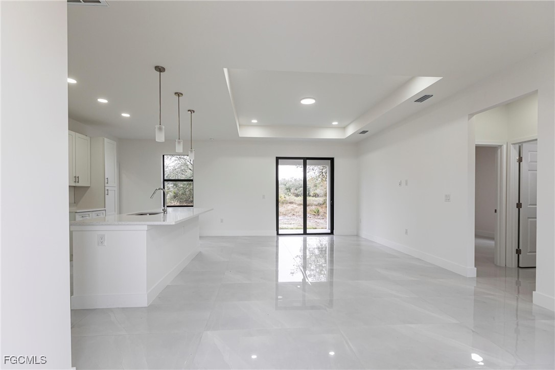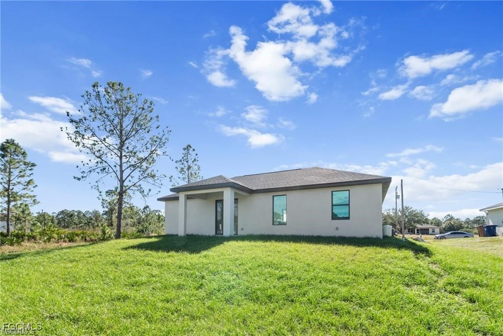 Modern home completed in 2024 and situated on a generous quarter-acre lot. This thoughtfully designed residence features tray ceilings, an open-concept layout, and abundant natural light throughout. The kitchen offers quartz countertops, stainless steel appliances, and clean, contemporary finishes that flow seamlessly into the main living areas. A split floor plan provides three well-proportioned bedrooms, two full bathrooms, and an interior utility room for added convenience. Enjoy covered outdoor living under the lanai, ideal for everyday use or entertaining. Impact windows enhance durability, security, and storm protection. A well-built home combining modern design, quality finishes, and functional living.
