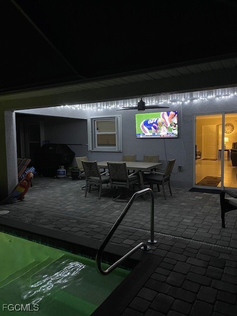 Experience all the bells and whistles in this beautifully maintained great-room pool and spa home. Lush landscaping surrounds a true backyard oasis, complete with a large pool, in-ground spa, expansive pavered lanai with TV mount, and plenty of room to relax or entertain. Additional pavers extend across the lanai and driveway, and a premium white vinyl fence provides privacy with a clean, modern aesthetic. Step inside to soaring ceilings and an open great-room layout accented by tile flooring throughout. The kitchen features white shaker cabinetry, granite countertops, stainless steel appliances, and a versatile breakfast bar/island perfect for everyday dining. Elevated baseboards add a refined touch, while both bathrooms offer coordinating white shaker cabinets and granite counters for a cohesive upscale feel. Recent improvements include accordion hurricane shutters (2025) and upgrades to the A/C system such as an iFlow line-clearing system, UV light for cleaner ductwork, and a smart thermostat—all remotely accessible by smartphone for efficiency and peace of mind. This home truly has it all—style, comfort, and exceptional outdoor living.