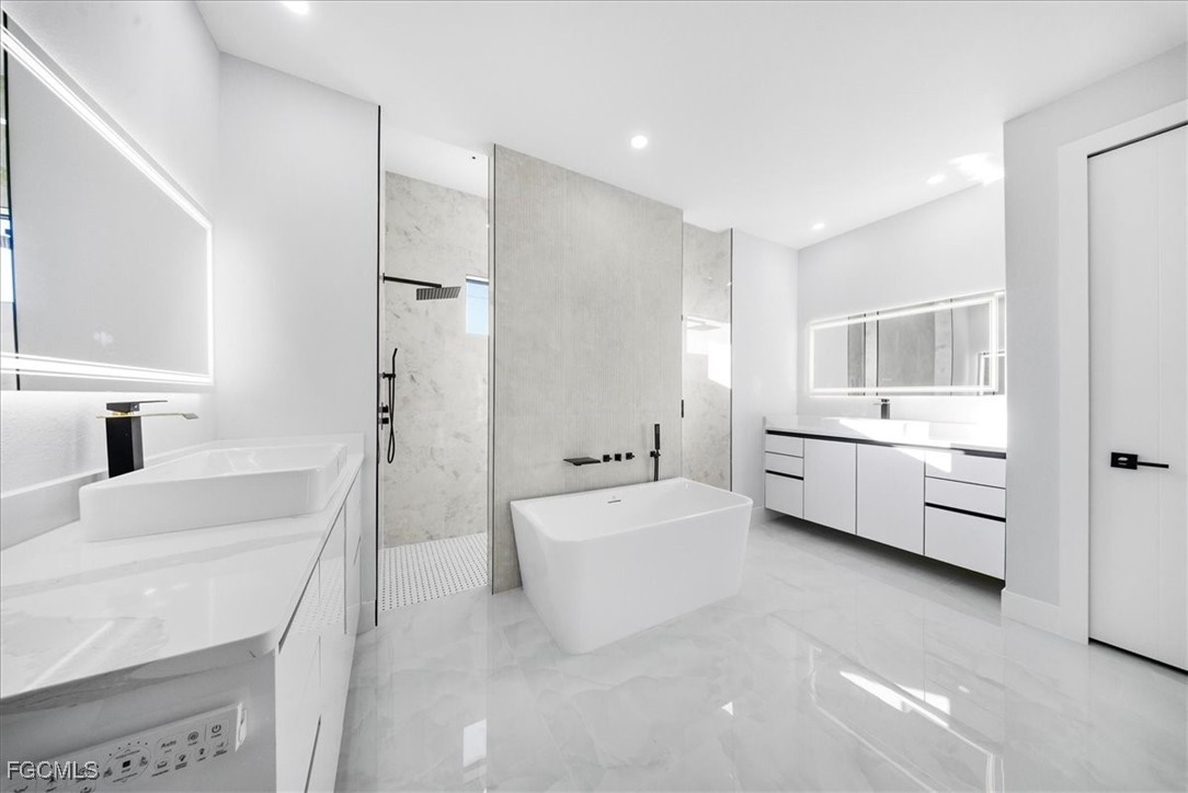 Step into refined contemporary living in this newly built modern masterpiece, thoughtfully designed with luxury, functionality, and style in mind. This stunning home offers 4 spacious bedrooms, each featuring its own private en-suite bathroom complete with rain showers and smart toilets, creating a true retreat for family and guests alike. The primary suite is an oasis of elegance, boasting a spa-inspired bath with a sleek freestanding soaking tub, a dramatic pass-through shower outfitted with modern rain showerheads and designer faucets, and separate vanities. Dual walk-in closets with custom built-ins provide exceptional storage and organization. Throughout the home, oversized 48x48 porcelain tile flooring delivers a seamless, sophisticated look. The chef’s kitchen is both striking and highly functional, featuring sleek modern cabinetry, quartz countertops, a generous island, and abundant storage. High-end appliances include a sleek cooktop, double ovens, and a smart French-door refrigerator with freezer, making this kitchen perfect for everyday living and entertaining. The kitchen flows effortlessly into a dedicated dining area, open and visible to the great room, creating an inviting space for gatherings. A private den offers flexibility as a home office, media room, or quiet retreat. Step outside to enjoy the outdoor kitchen, ideal for al fresco dining and entertaining year-round. For those seeking the ultimate outdoor experience, the builder offers the option to add a 14’ x 28’ pool with 3 feet of surrounding pavers for an additional $50,000, transforming the backyard into a private resort-style escape. With its spacious layout, premium finishes, and impressive array of modern upgrades, this exceptional home is truly a must-see for buyers seeking contemporary luxury at its finest.