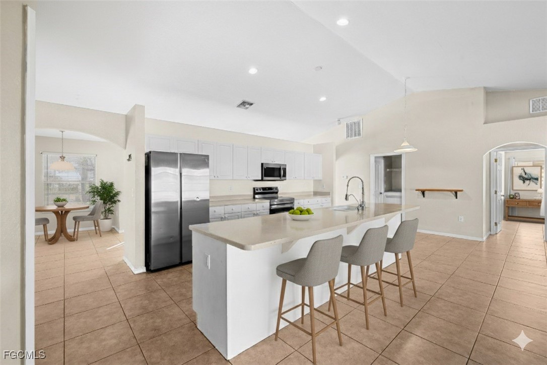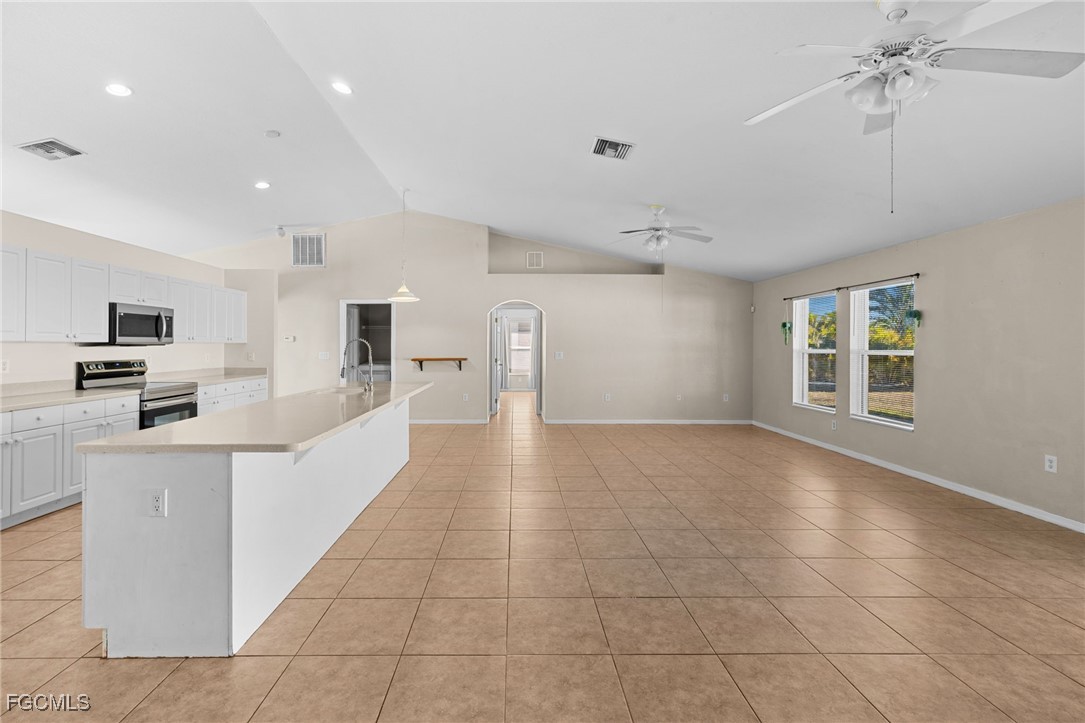 1207 Kismet Parkway West | Functional Luxury & Flexible Design: Discover a meticulously updated, 2,100 sq. ft. residence where every square foot is designed with purpose and flexibility in mind. Unlike standard builds, this home offers a rare and highly adaptable floor plan featuring 3 bedrooms plus a dedicated den, along with two separate living areas ideal for modern living, entertaining, or multigenerational needs. The bonus den provides a versatile private space perfect for a quiet home office, hobby room, or an easy conversion into a fourth bedroom. Enjoy both a formal living room for hosting guests and a massive separate family room for everyday relaxation, movies, or game nights. The chef’s kitchen serves as the heart of the home, featuring an expansive layout that overlooks the family room, making it perfect for entertaining and staying connected while cooking. Move in with total peace of mind, as this home features a newer roof from 2023, a newer AC system from 2024, a new water heater from 2025, and fresh tile flooring throughout. The split floor plan is designed for privacy, with generously sized bedrooms and a primary suite that serves as a true retreat. Outdoors, you will find a private backyard on a spacious lot with a screened patio offering plenty of room to design your dream pool, garden, or outdoor entertainment area. The home is located in a growing North Cape Coral corridor with quick access to Nelson Rd, Chiquita Blvd, and nearby dining and shopping. The sellers are highly motivated and offer seller financing options, creating a unique opportunity for savvy buyers and investors seeking a move-in-ready home with built-in equity potential.