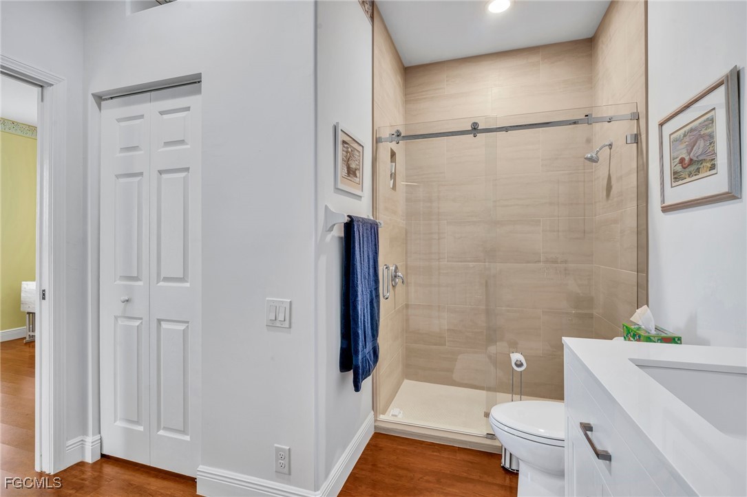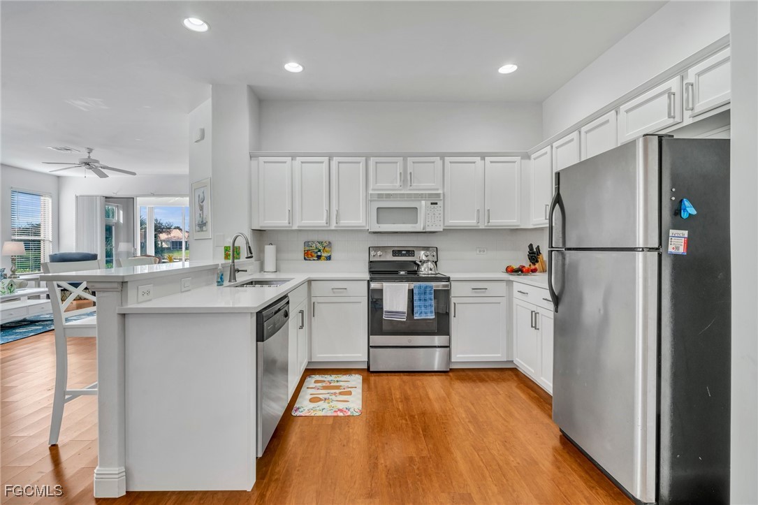 Enter through the screened entry into a newly painted interior highlighted by premium luxury vinyl plank flooring throughout the living spaces. The updated kitchen features crisp white cabinetry, quartz countertops, and two pantries providing excellent storage. The primary bedroom enjoys peaceful lake views and includes two closets, one of which is a walk-in. The ensuite bath has been remodeled with a dual-sink vanity and a frameless glass, barn-door–style shower enclosure with tile surround. The guest bathroom has also been fully updated, featuring a new vanity and a shower-tub combination with tile surround. A convenient linen closet is located in the hallway. An extended lanai with acrylic sliders offers additional living space and a comfortable setting to enjoy the tranquil lake views and Florida’s outdoor lifestyle. Lexington Country Club is a 24-hour guard-gated community with walking and biking paths, tennis, bocce, a main clubhouse with restaurant, and a fully stocked pro shop. Conveniently located just minutes from Fort Myers beaches and approximately 1.2 miles from HealthPark Medical Center and Golisano Children’s Hospital.