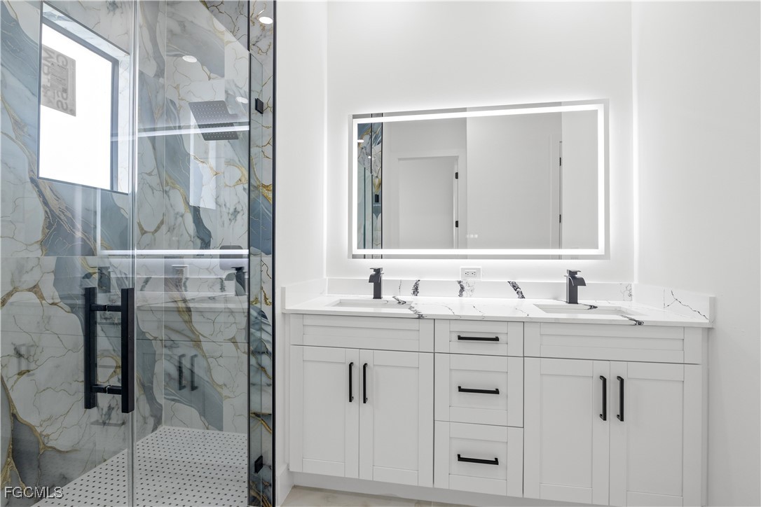 .Welcome to this stunning new-build (2026) home on a spacious lot in one of the fastest-growing areas of Lehigh Acres, Florida. This home features 4 bedrooms and 3 bathrooms, a spacious master suite, and custom closets. Enjoy the large kitchen with an oversized island that adds a touch of elegance to the modern kitchen, equipped with brand-new stainless steel appliances. High ceilings provide abundant natural light, and a deck with an outdoor kitchen and protective netting is perfect for family gatherings. This beautiful property offers abundant LED lighting throughout, a modern fireplace, impact-resistant doors and windows, a 2-car garage, and an in-house washer and dryer. The interior of this home boasts unique and luxurious features. Can't find the perfect home? Trust me, this is it. Ready to show.