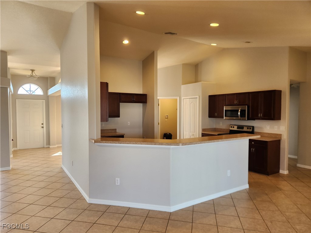 Cape Coral 4 bedroom plus den home in the expanding NW quadrant of the city. The large Master BR and bath are separated from the other 3 BRs. Master BR features include a nice size walk in closet, dual sinks, tiled shower and garden tub. The home has a formal dining room as well as a breakfast table area on opposite sides of the kitchen.