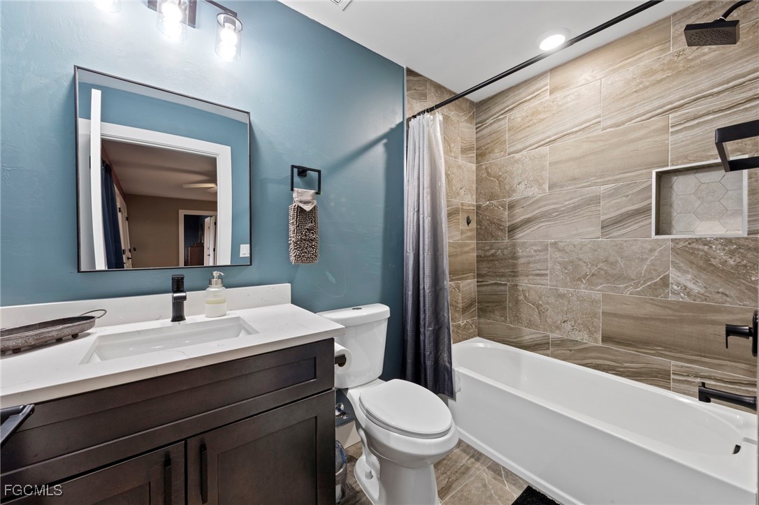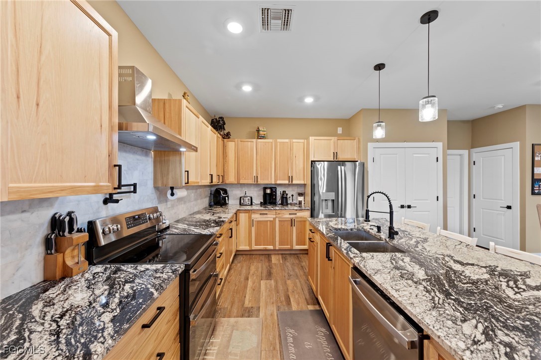 Don't spend new construction prices when you can buy better! Custom built in 2024, this beautifully designed home offers over 2,300 sq ft of living space with 3 full bedrooms, an enclosed den, 3.5 bathrooms, and an oversized loft upstairs, perfect as a gaming room, media space, or second living area. The wide-open floor plan is enhanced by Pergo hardwood flooring, upgraded lighting and fans and a built in nook underneath the stairs for a workspace area so the kids can knock out homework while your cooking dinner. The kitchen features clear hickory hardwood cabinetry, a large dual door pantry, an oversized island topped with Level 3 granite, tiled backsplash, stainless steel appliances and extra space for seating. The oversized master suite includes 2 walk-in closets, separate dual sink vanities, a soaking tub, and a gorgeous glass-enclosed stall shower. Hurricane impact windows provide peace of mind and insurance savings, while the blackout shades add comfort and energy efficiency. Additional highlights include a second-floor laundry room for everyday convenience, whole-home reverse osmosis water system, Southern rear facing exposure, screened-in picture-window lanai, full yard irrigation, and a retaining wall creating a level backyard with no graded slope to contend with. Situated on a quiet dead-end street with no through traffic, this home offers privacy while remaining just minutes from Fort Myers, shopping, schools, and restaurants.