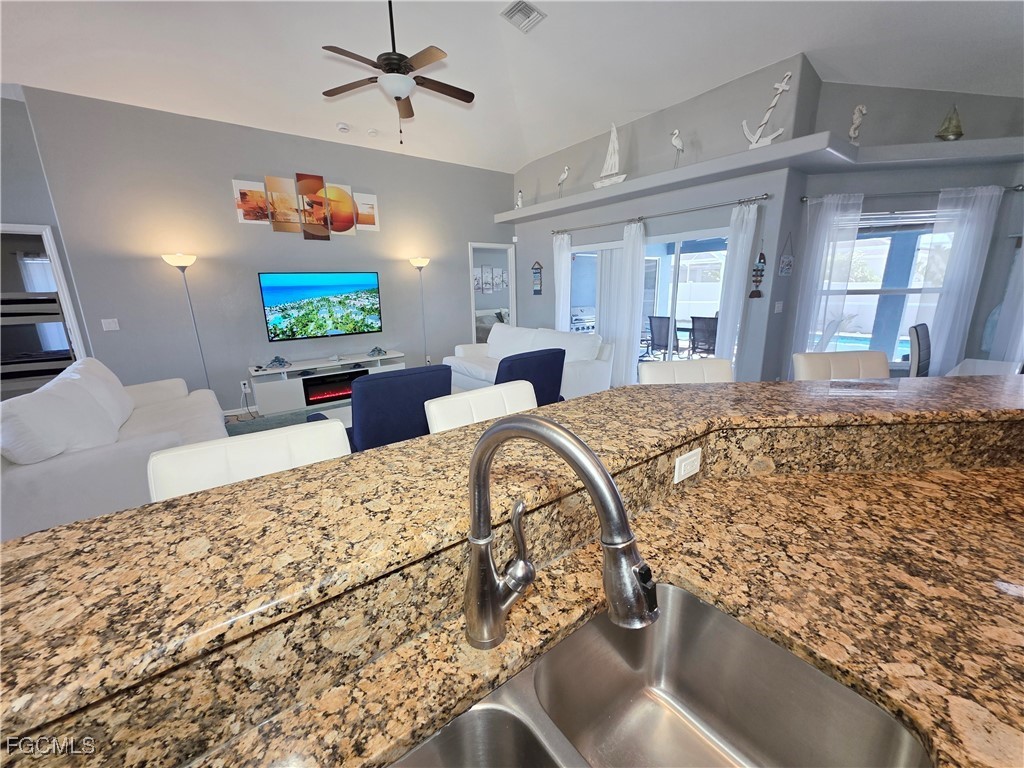 Step into refined Florida living with this meticulously maintained, fully turnkey residence—an exceptional opportunity that delivers remarkable value for the price in one of Cape Coral’s most promising growth corridors. Designed for effortless enjoyment, this four-bedroom home showcases a spacious open-concept layout that blends casual elegance with everyday comfort, creating an ideal setting for both relaxed living and sophisticated entertaining. At the center of the home awaits a stunning heated saltwater pool, inviting year-round enjoyment beneath the Florida sun. Whether hosting sunset gatherings or savoring tranquil morning swims, this private outdoor oasis defines the Southwest Florida lifestyle. Enhancing the home’s appeal are a contemporary tankless water heater and a premium whole-house reverse osmosis system—luxury upgrades rarely found at this price point. The lush, professionally irrigated landscape is maintained by an automated sprinkler system, while major improvements—including a newer roof, air-conditioning system (2019), and pool pump (2020)—offer confidence and long-term peace of mind. A washer and dryer are included, and the newly installed fence creates a serene retreat ideal for pets, family, and outdoor relaxation. The kitchen features stainless steel appliances, granite countertops, and a voluminous area for the family chef to go wild. The Owner's bedroom conveniently includes his & hers walk-in closets, while the owner's bathroom has a tiled shower and separate soaker tub. The laundry room is spacious with a laundry tub, and large linen closet. Offered completely turnkey, this residence provides an unparalleled transition for buyers relocating from the northern states. Simply arrive, unpack, and begin enjoying palm trees instead of snow, warm breezes instead of winter coats, and poolside afternoons in place of icy mornings. No renovations, no waiting, no uncertainty—just immediate Florida living from day one. Perfectly positioned near the highly anticipated Seven Islands Project, this rapidly developing area is poised for significant appreciation, further strengthening the home’s investment potential while enhancing daily livability with future waterfront dining, marinas, and entertainment. When compared to the cost of upgrading, furnishing, and renovating similar homes, the value offered here is undeniable. With its extensive improvements, turnkey convenience, and resort-style amenities, this property represents a rare opportunity to secure more home, more lifestyle, and more long-term upside—at a price that stands out in today’s market. Welcome to where comfort meets confidence—and every day feels like vacation.