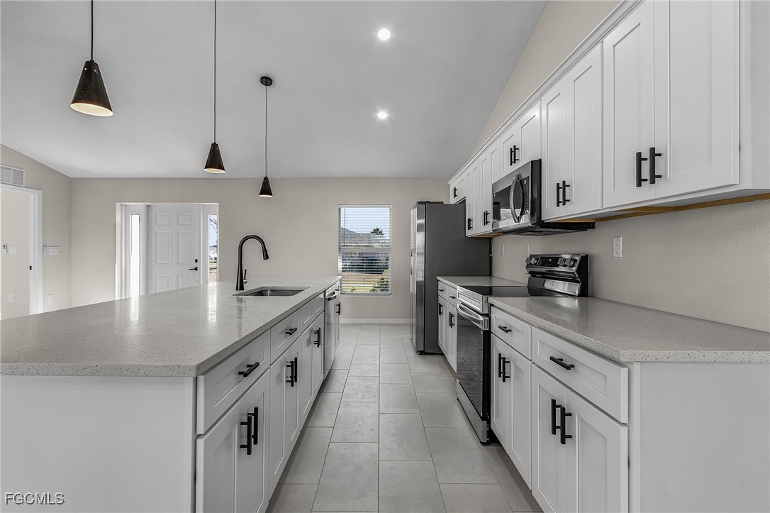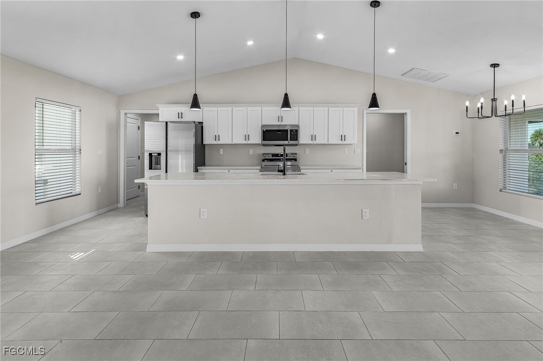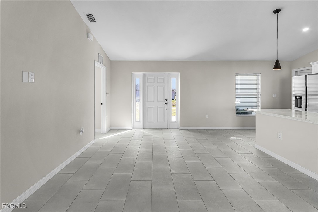 Welcome to your brand-new, 4BR/3BA waterfront home in desirable Northeast Cape Coral (Gator Circle area)—ready for immediate occupancy. Set on well & septic (no city assessments) and located in Flood Zone X, this popular Verona plan delivers bright, open living with tile throughout, a soaring vaulted ceiling, and 3-panel sliders framing tranquil freshwater canal views.