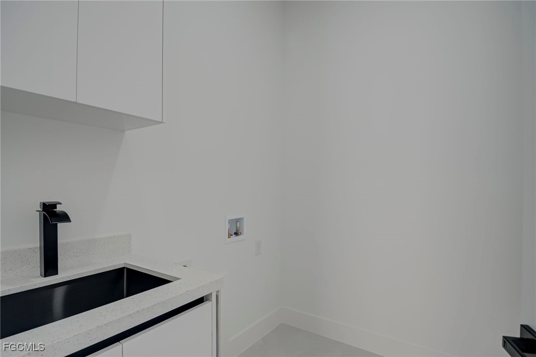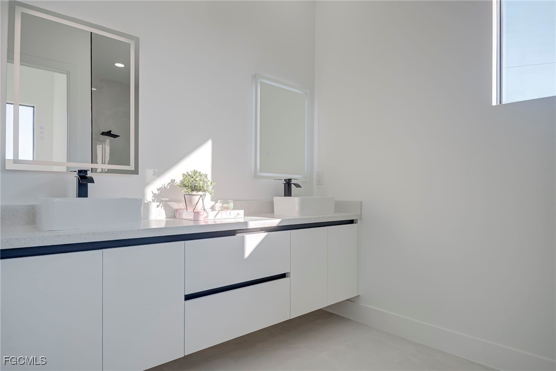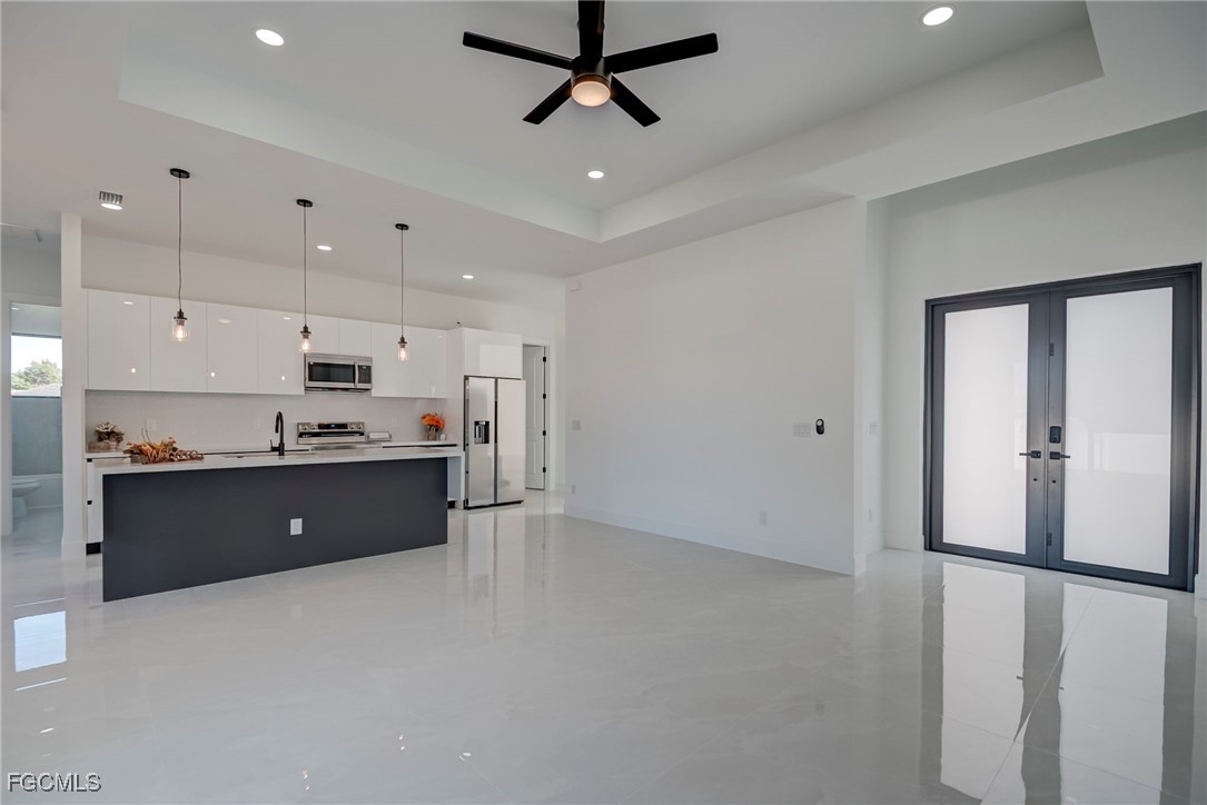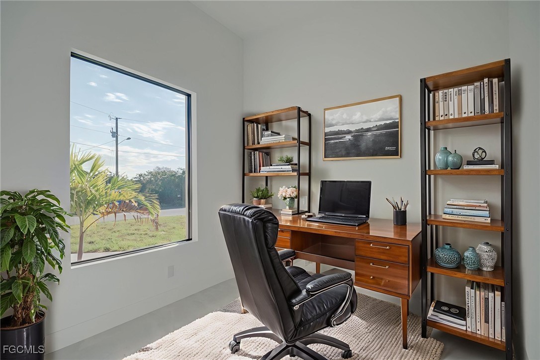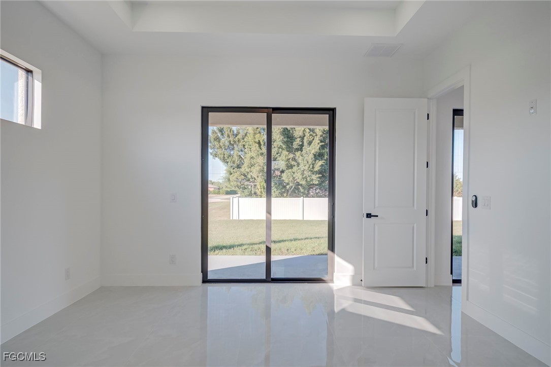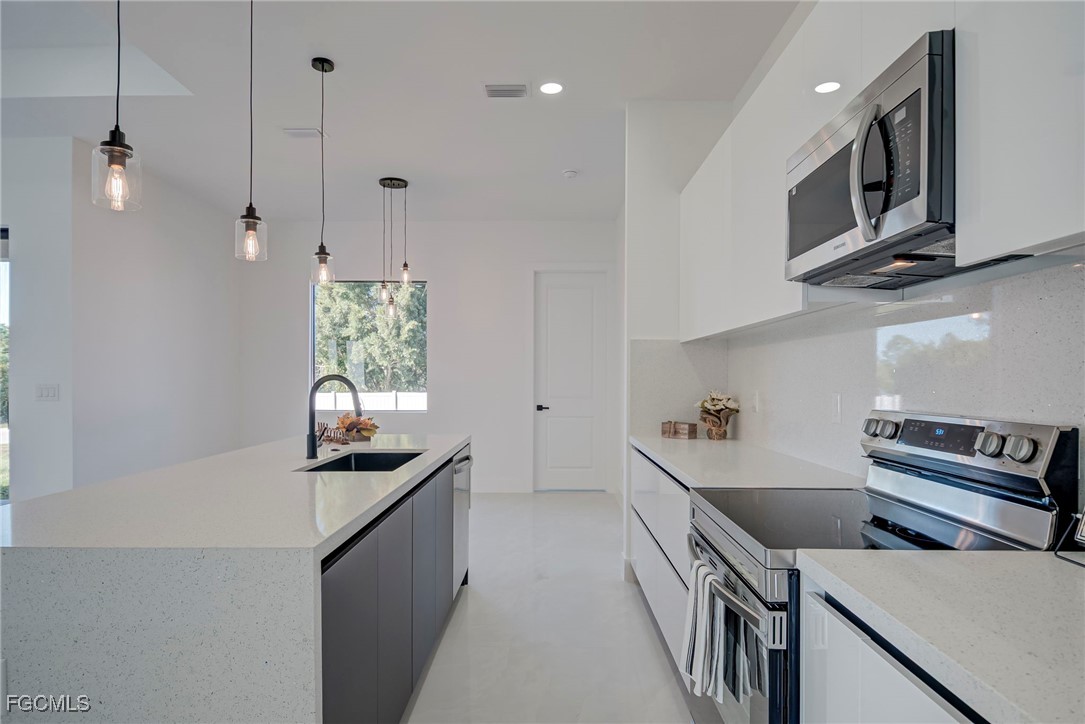 Welcome to this stunning new construction home, 3 bedrooms + a den 2 1/2 bathrooms perfectly positioned on a desirable corner lot in Lehigh Acres, Florida. This contemporary residence features three spacious bedrooms and two and a half bathrooms, including a convenient guest bath with exterior access. The home includes a versatile den that can easily be converted into a fourth bedroom or used as a home office. Enjoy the convenience of an in-house laundry room, adding to the home's functionality. Step inside to find elegant porcelain flooring throughout, complemented by sleek quartz countertops in the kitchen. The modern space is further enhanced by stainless steel appliances and contemporary fixtures and cabinets. The kitchen is a highlight, boasting an impressive island with a waterfall edge, ideal for both cooking and entertaining. Additional features include a beautifully paved driveway and walkway, providing both style and durability. The home is ideally located near shopping and restaurants, offering convenience and accessibility. Don’t miss this opportunity to own a beautifully crafted home in a prime location. Call us today to schedule your private showing and make this exceptional property yours.