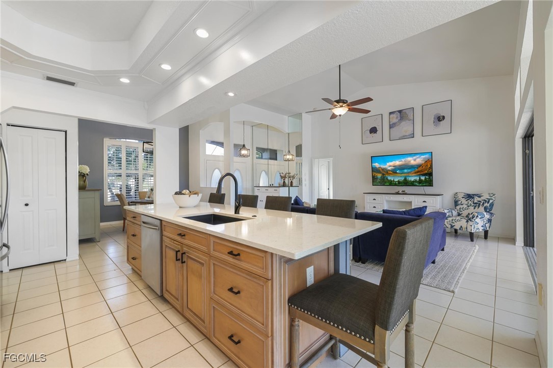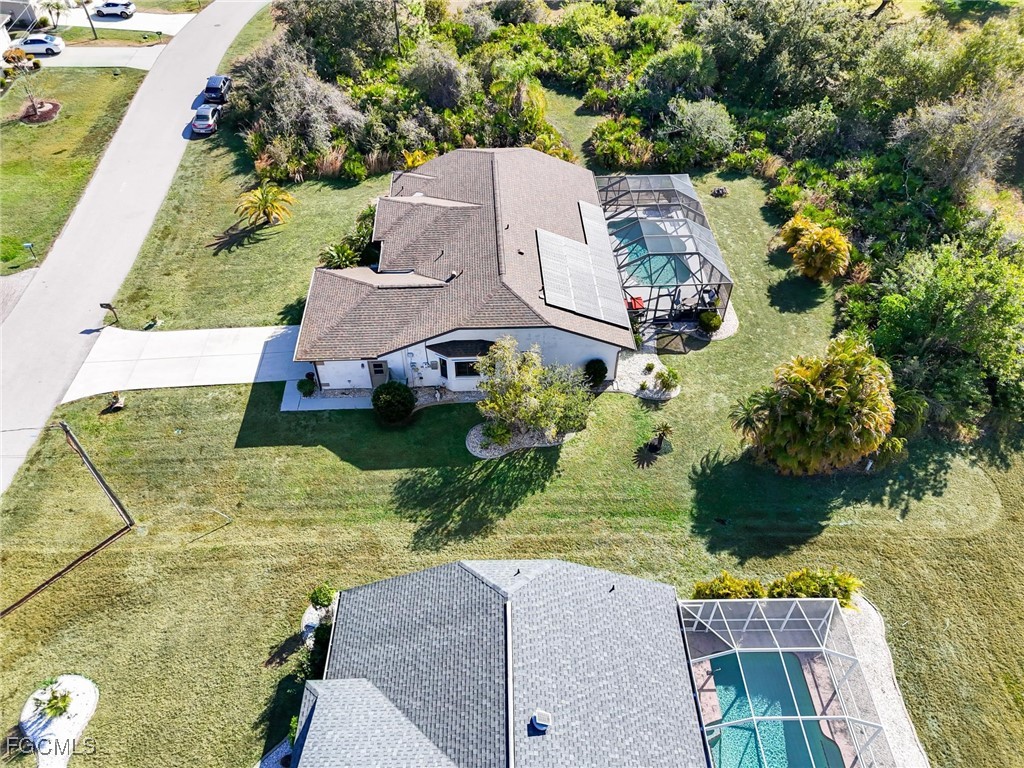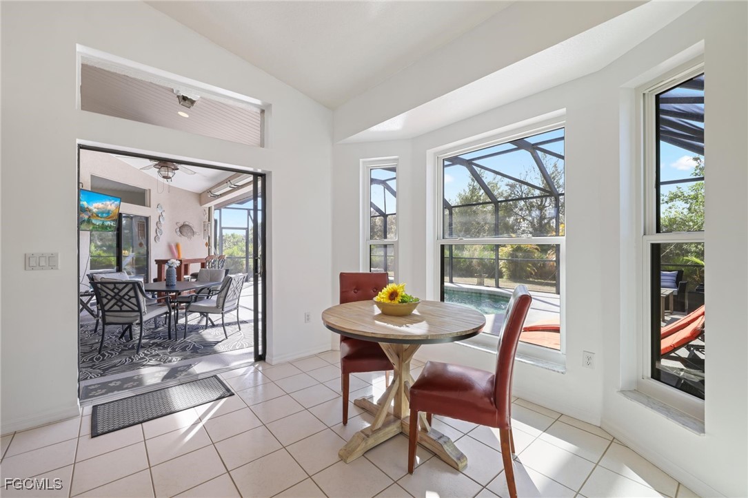 As you enter, you’re greeted by a clear view of the sparkling pool and the beautifully private backyard. The spacious great room features vaulted ceilings and opens seamlessly to the kitchen, which includes an oversized island with custom beadboard, quartz countertops, a stylish backsplash, and updated lighting. A separate dining area and breakfast area provide additional spaces for gatherings or everyday living. Crown molding adds a refined touch, enhancing the home’s warm and elegant character. Not located in a flood zone and has been thoughtfully updated throughout. The screened lanai and heated pool offer year-round enjoyment, and the lanai was rescreened in 2023 for a comfortable, bug-free outdoor living experience.
