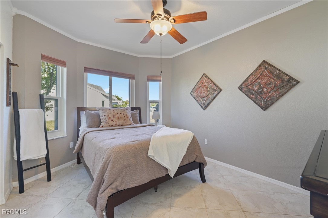 The oversized primary bedroom has room for a sitting area or home office the sliders open out to the lanai and pool area.