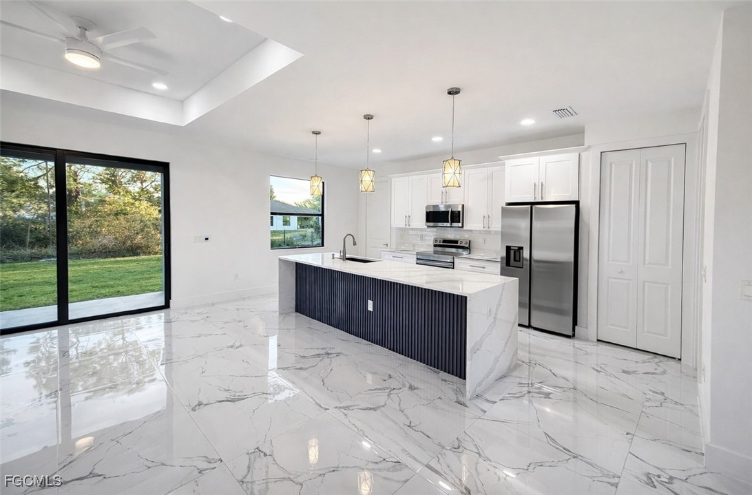 This beautifully crafted new construction residence invites you in with a bright, open layout and a sense of space that feels both welcoming and refined. The large living area with elegant tray ceilings creates the perfect backdrop for everyday moments and unforgettable gatherings, effortlessly connecting comfort with style.