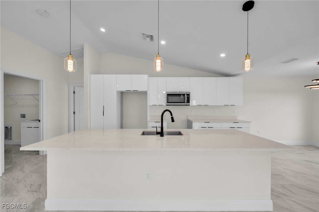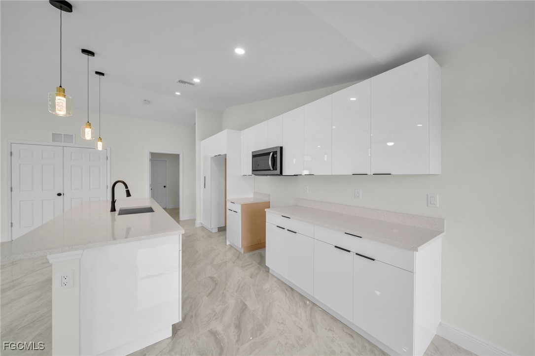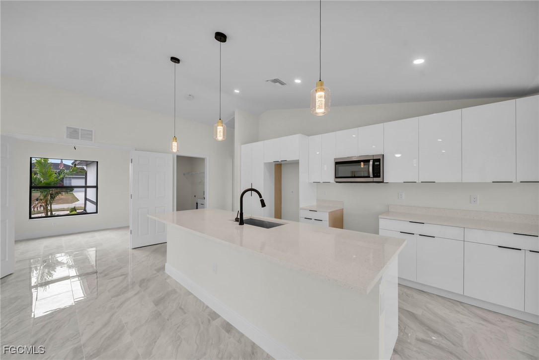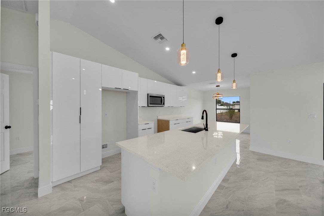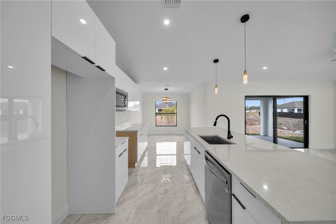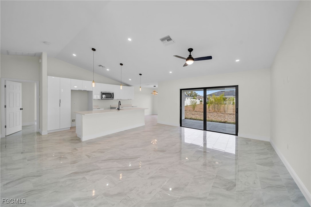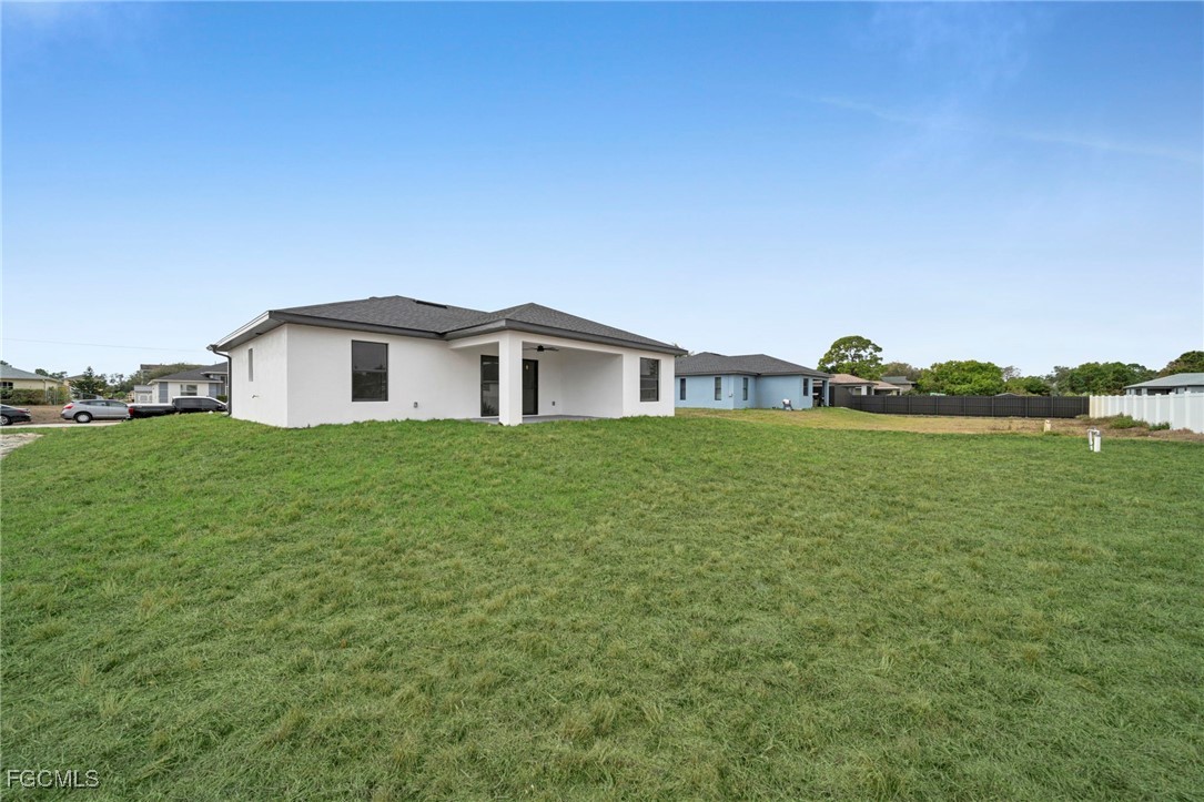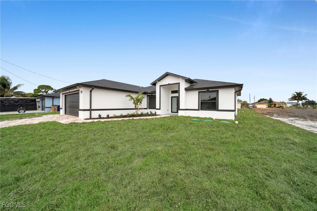 Introducing a Brand New Beautiful Home – Move-In Ready! Discover this stunning 3-bedroom, 2-bathroom modern home complete with an additional den, perfect for a home office or extra living space. Move-in ready, this home features 100% tile flooring throughout, enhancing both style and easy maintenance. The open-concept kitchen is a chef’s dream with elegant quartz countertops, 42-inch cabinets, and brand-new stainless steel appliances, creating an ideal setting for entertaining family and friends. The laundry room includes a convenient quartz counter top sink, adding to the home’s functionality. Retreat to the luxurious master suite, complete with a beautifully tiled walk-in shower and spacious walk-in closets, offering both comfort and convenience. Step outside to the expansive backyard, perfect for relaxation, outdoor activities, and hosting gatherings with loved ones. The very spacious lanai and epoxied garage floor add impressive finishing touches to this modern home. Situated in a peaceful and friendly neighborhood, this home offers quick access to schools, shopping centers, and major roads including 82 Rd, Daniels Parkway, Lee Blvd, Colonial Blvd, and I-75, ensuring both comfort and accessibility. Take advantage of the builder’s closing cost assistance and down payment programs to make your home-buying process even smoother. Don’t miss out on this excellent opportunity—schedule your visit today!!