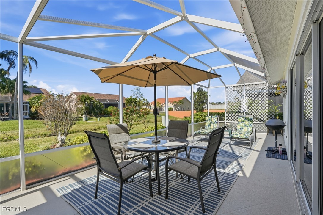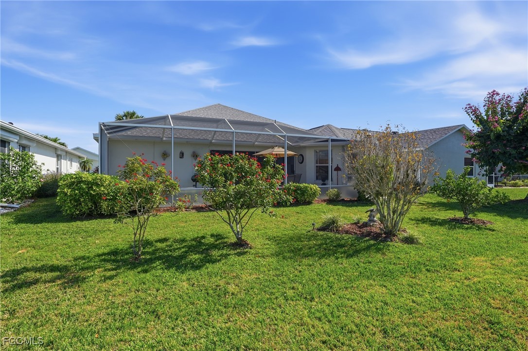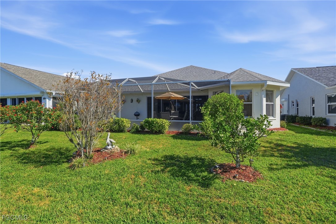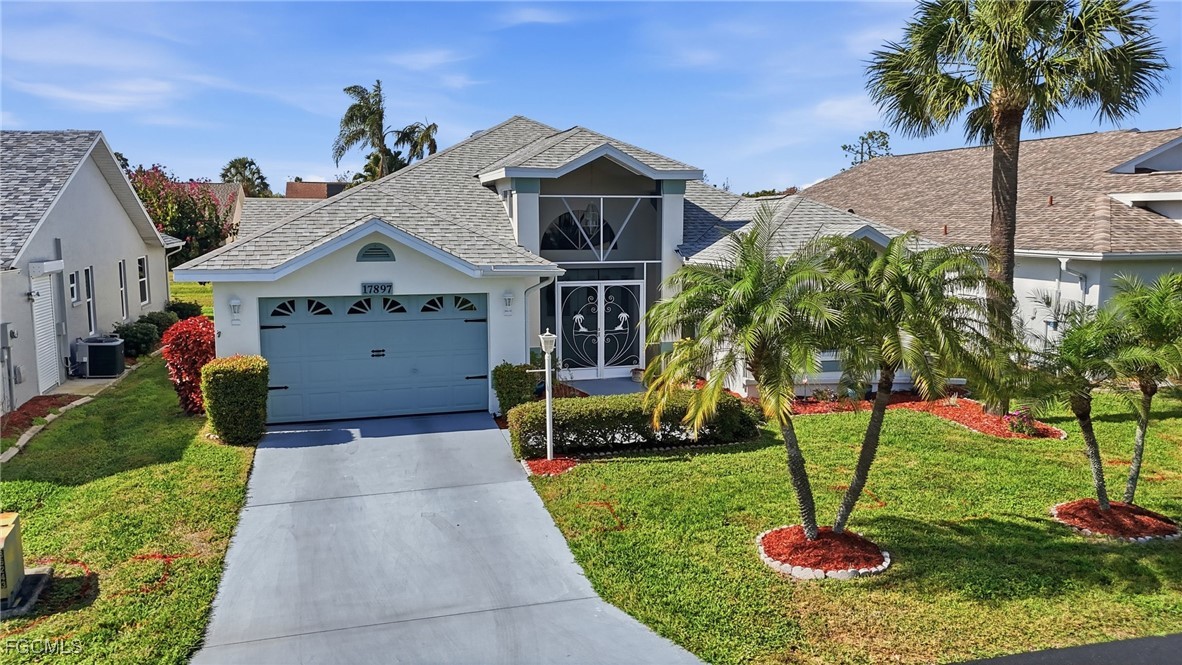 Step inside and feel the difference immediately as cathedral ceilings create a bright, open atmosphere that makes this home live larger than expected. Immaculately maintained and move-in ready, this residence offers comfort, confidence, and effortless Florida living from day one. The living space flows seamlessly to a huge lanai, ideal for morning coffee, evening relaxation, or entertaining guests, with room to add a pool for future flexibility. Whether hosting friends or enjoying quiet moments, the indoor-outdoor connection is exceptional. Major systems have already been addressed for peace of mind, including a newer roof with warranty, electric panel replaced last year, water heater replaced in 2023, and a 5-year-old HVAC system that has been regularly maintained and includes a warranty. All appliances are just 4–5 years old, and a new garbage disposal adds another recent upgrade. The garage offers space for both a vehicle and a golf cart, while an intercom system adds everyday convenience. Enjoy low HOA fees paired with full resort-style amenities that make this community so desirable. For those seeking simplicity, the home is available turnkey for an additional $5,000, allowing you to move in and start enjoying the lifestyle immediately. Well-maintained homes with this level of value and readiness are rare—schedule your showing today.