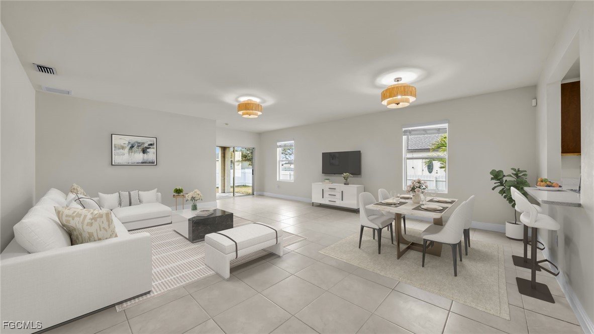 ***100% LENDER FINANCING, NO MONEY DOWN, NO MORTGAGE INSURANCE******NOT IN THE FLOOD ZONE*NO HOA**NO CDD******BUILDER INCENTIVE- 10K BUILDER CREDIT towards closing cos, pre-paids or rate buy down with the use of a preferred lender and preferred title company********Preferred Lender is LENDER Offering 100 LTV, NO MONEY DOWN WITH NO MORTGAGE INSURANCE PREMIUM FOR FIRST TIME HOME BUYERS(All buyers As long as you have not owned a primary residence before closing).****Great NE Cape Coral location right near Santa Barbara Blvd and Kismet Pkwy. Home comes with 36” Ashburn Sienna kitchen cabinets with hardware, quartz kitchen counters, solid surface bathroom counters, 18” tile everywhere except the bedrooms, carpet in bedrooms, stainless kitchen appliances, white washer and dryer, blinds on all windows except for slider, ceramic shower tile in both bathrooms, paver driveways and lanai, covered lanai, full irrigation system, electric garage door with opener, dimensional shingle roof and a home-is-connected convenience package.