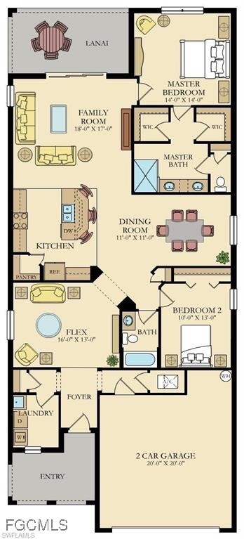 Experience resort-style living every day in this furnished single-family home within a 5-star like community. Residents enjoy pool, clubhouse, pickleball and tennis courts, fitness center, numerous exercise classes and complimentary coffee room while the home itself features a spacious open floor plan with 2 bedrooms, 2 baths and a flex room. Large kitchen has granite countertops and walk-in pantry. Experience the outdoors on your own screened-in lanai or front porch. Conveniently located in this quiet community off the Treeline corridor with close access to RSW Airport, 2 Spring training ballparks and numerous shopping and dining.