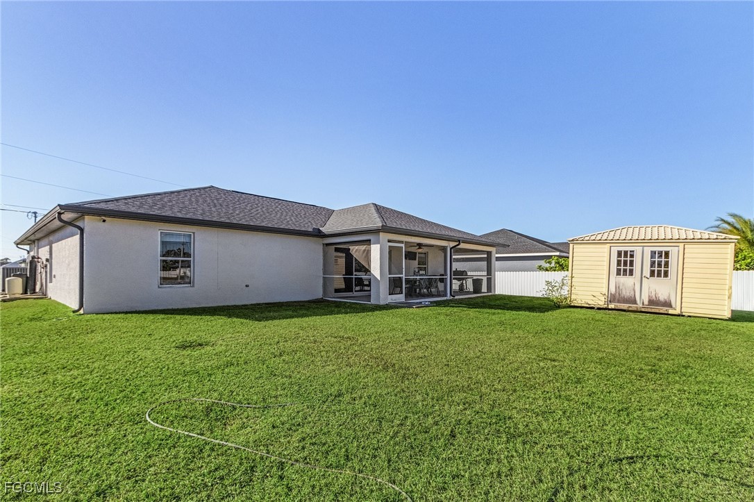 Step out back and unwind on the oversized screened lanai, complete with ceiling fans—perfect for morning coffee, evening dinners, or hosting friends. The large backyard offers space to spread out, with a storage shed for convenience and a mature mango tree that adds a sweet touch of tropical charm.