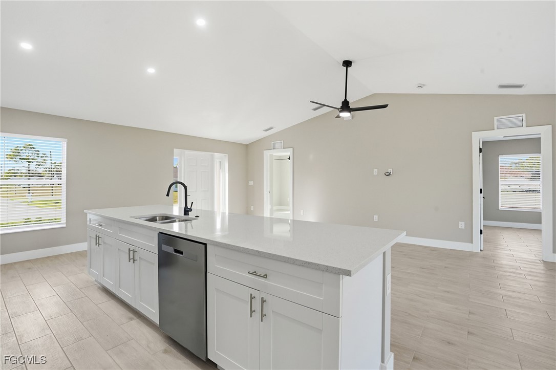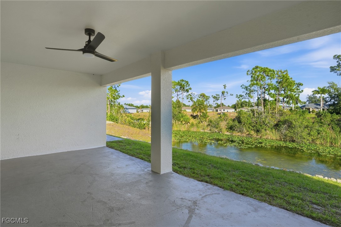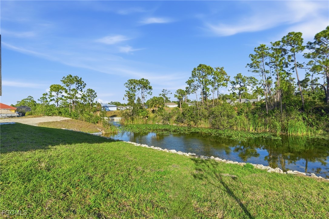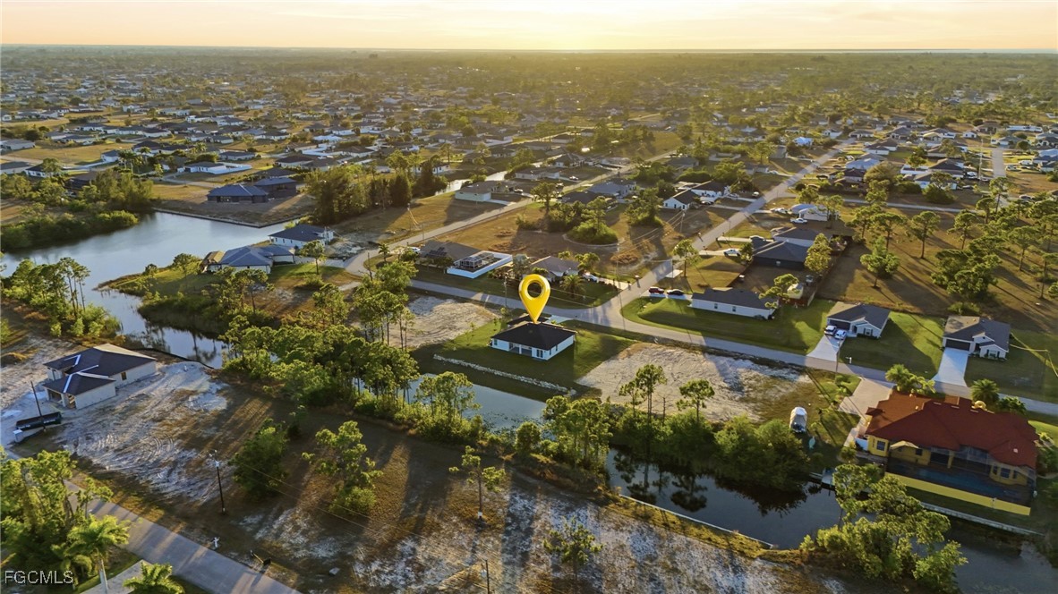 Welcome to this WATERFRONT 4 Bedroom, 3 Bathroom, 2 Car Garage home located on an oversized waterfront lot in Cape Coral, perfectly positioned on a freshwater canal. CLICK ON THE VIRTUAL TOUR LINK 1 FOR THE VIDEO AND VIRTUAL LINK 2 FOR THE 3D TOUR. This 2026 new build features porcelain tile flooring throughout and an open floor plan with high vaulted ceilings, creating a bright and airy atmosphere. The kitchen is a chef’s dream, with elegant stone countertops, stainless steel appliances, and a center island with a breakfast bar. It flows seamlessly into the open living and dining areas. The living room features a glass slider that overlooks the canal, offering breathtaking water views, while the dining area is highlighted by a large window, perfect for waterfront dining. The spacious master bedroom is highlighted by a glass slider where you can enjoy peaceful mornings watching wildlife along the canal from your bedroom. It includes a large walk-in closet and an en-suite bathroom with a dual sink vanity, a walk-in shower, and a linen closet. One additional guest bedroom is located on the same side of the home as the primary suite, while a second primary and 4th guest bedroom are on a split floor plan. The second primary suite has a glass slider leading to the lanai and an en-suite bathroom with a single-sink vanity and walk-in shower. Both guest bedrooms include built-in closets and share a conveniently located guest bathroom. The covered back lanai is perfect for sipping your morning coffee or unwinding with an evening beverage while enjoying the serene water views. The spacious backyard provides plenty of room to create your own outdoor oasis. Centrally located for easy access to parks, schools, shopping, and dining. Residents enjoy nearby recreational spots like Four Mile Cove Ecological Preserve & Sun Splash Water Park, plus easy access to boating and outdoor activities along the Caloosahatchee River, with a short drive to local award-winning beaches. Schedule your showing TODAY!