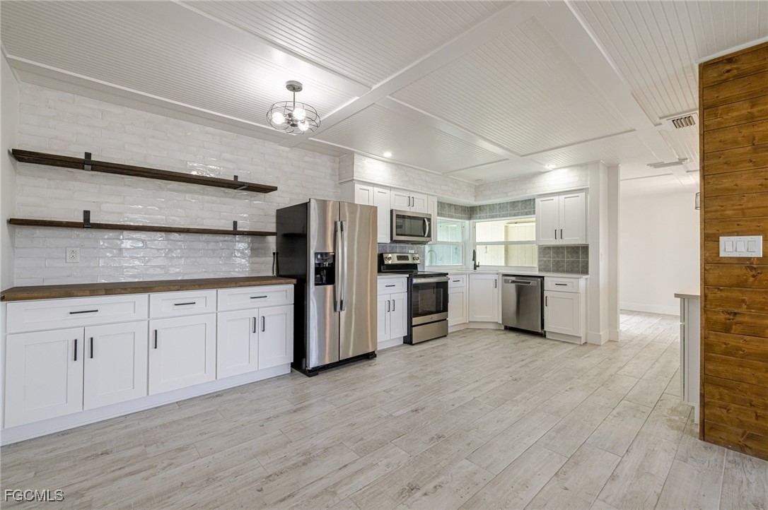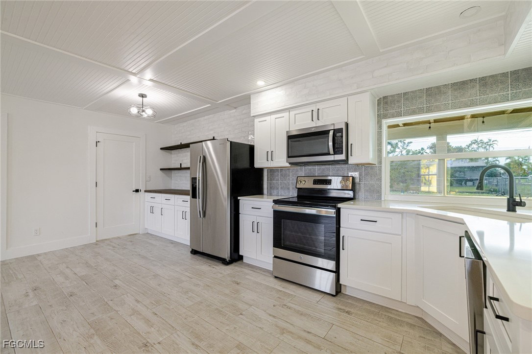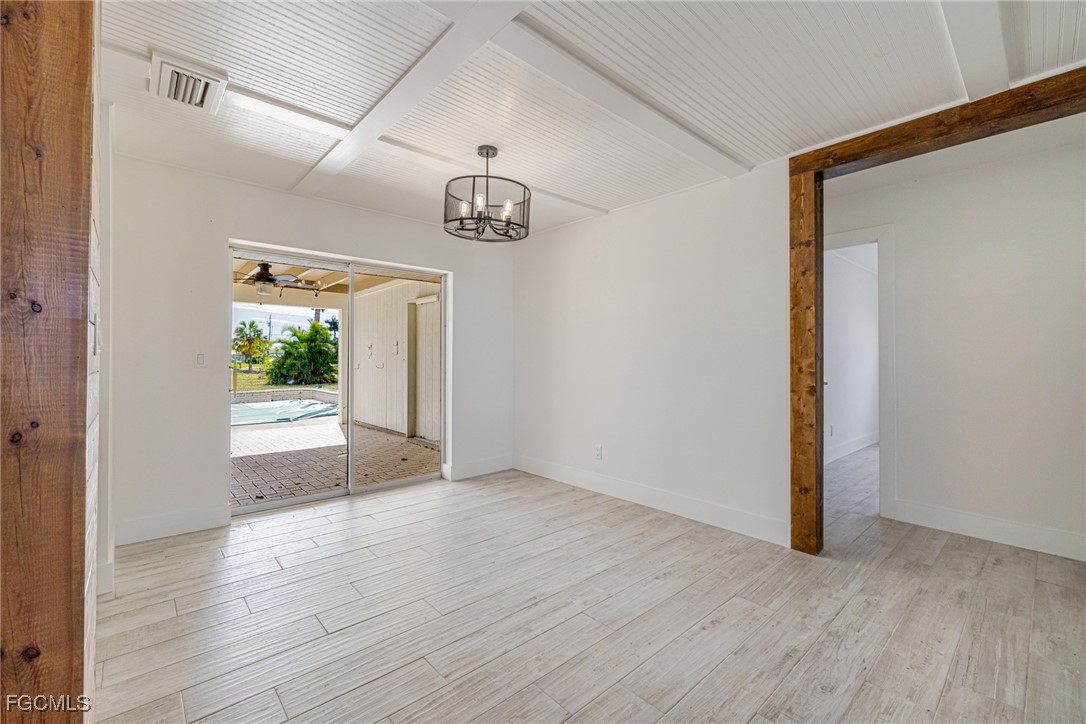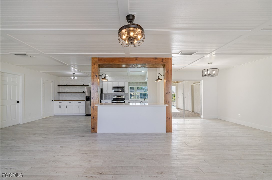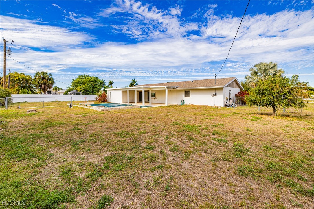 Move-in ready 3-bedroom, 2-bath, 2-car garage pool/spa home, offering nearly 1,800 sq ft under air and situated on a rare triple lot with southern rear exposure and city water/sewer in and paid. The fully renovated interior features plank tile flooring throughout, white shaker cabinetry, quartz countertops, stainless steel appliances, and abundant cabinet storage, all arranged in an open layout that connects the kitchen, living, and dining areas. Beadboard ceilings add character in the great and primary bedroom, while the primary suite also includes a large walk-in closet, bath with walk in shower and dual sinks. An oversized deck and pool with integrated spa includes built-in bench and table, complemented by a large covered lanai that extends the living space outdoors. Inside laundry room adds everyday convenience, and the expansive yard provides flexibility for future enhancements. Conveniently located less than 2 miles from downtown Cape Coral’s dining, entertainment, and waterfront events, under a mile to the Bimini Square redevelopment with medical offices and retail, Four Freedoms Park and close to a nearby transit hub, Cape Coral Beach and the future Yacht Club redevelopment, and a little over 3 miles from Fort Myers. Cape Elementary School is within approximately 2 miles, with additional schools nearby, offering easy access to restaurants, shopping, and daily essentials. Take a look!