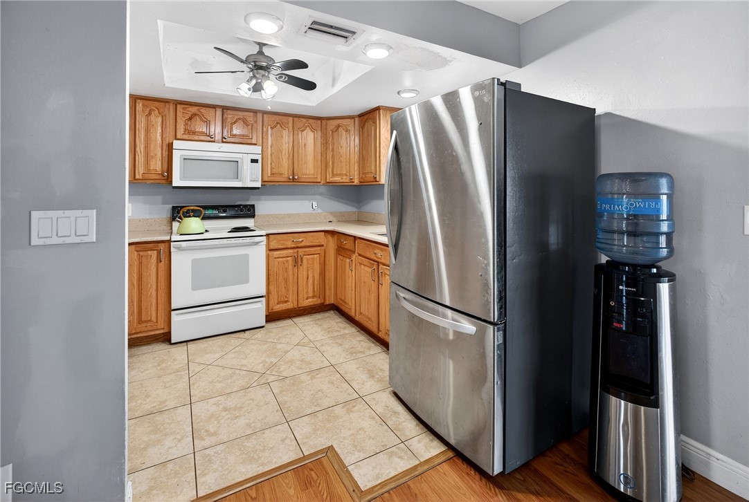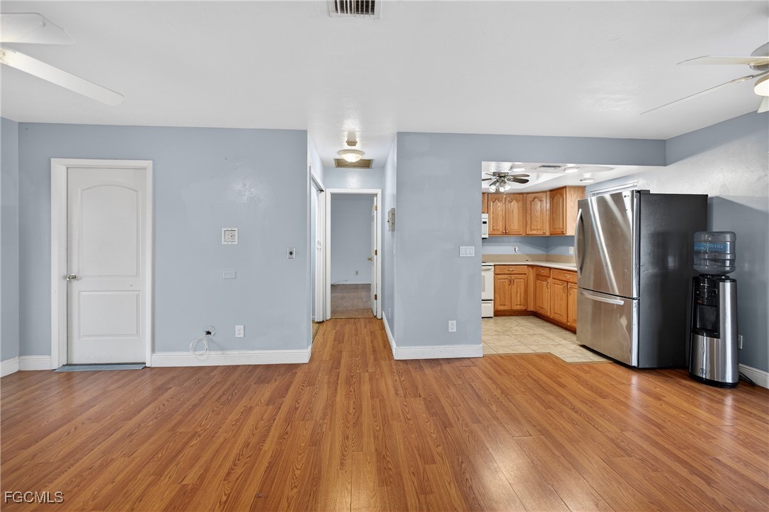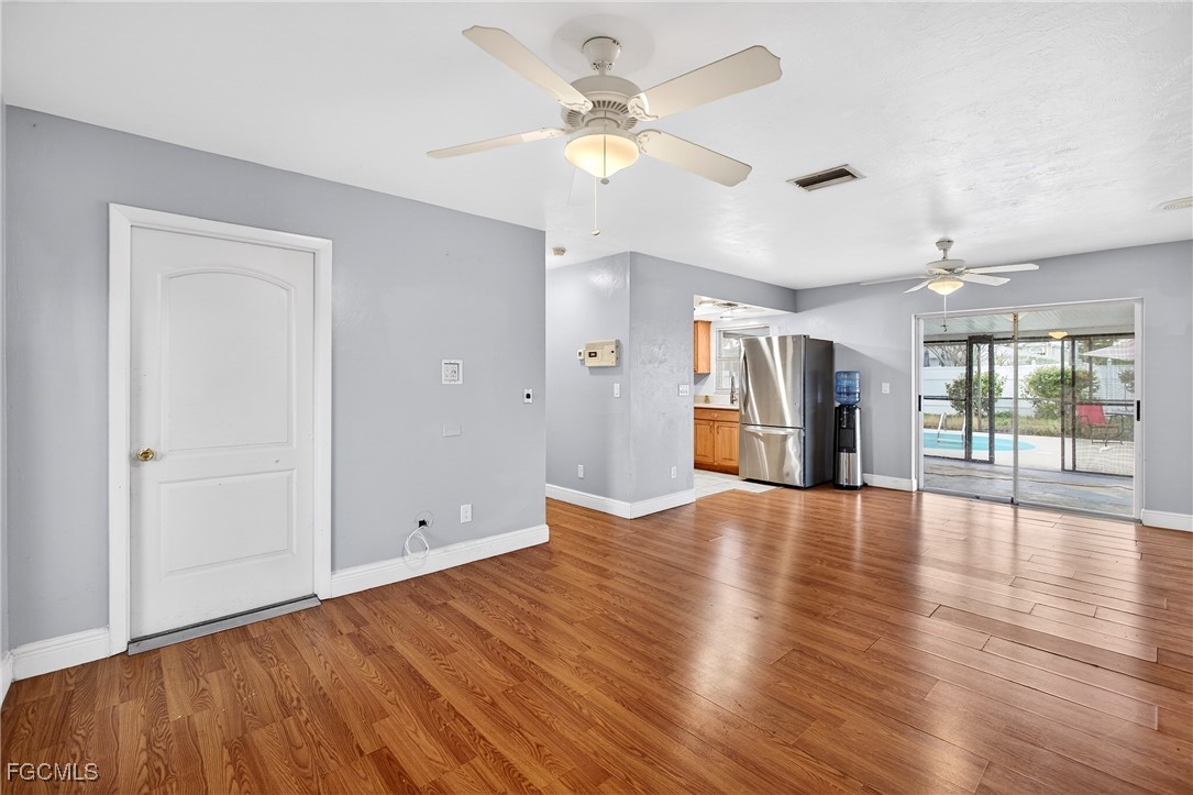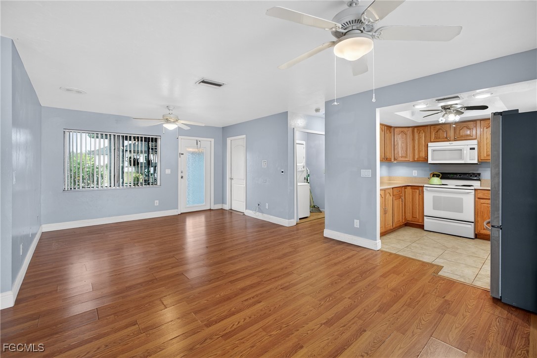 Property Features at a Glance:Interior: 1,116 sq. ft. of living space with laminate and tile flooring throughout. Kitchen & Appliances: Equipped with a microwave, range, and refrigerator. Comfort: Central electric cooling and heating with ceiling fans for efficiency. Bring your decorating ideas and seize the opportunity to own a pool home in a fantastic location! This property is easy to show on short notice.