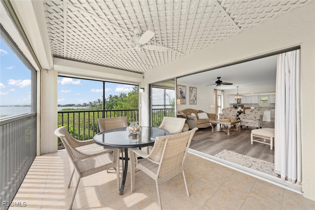 Discover the best of island living in this Gulf to Bay Sunset Captiva two bedroom corner unit, offering exceptional waterfront views and a premier Captiva Village location. Enjoy the beauty of Pine Island Sound and the convenience of being just steps from the beach, dining, and Island shops. This spacious unit includes access to a full suite of community amenities including deeded beach access, pool, tennis, pickleball, elevator, and private boat dockage. Added features include large enclosed golf cart storage in addition to limited covered owner parking (Not assigned). Designed for comfort and resilience, with impact glass, comprehensive storm protection, new AC system, and a new roof. Exceptional investment opportunity, Sunset Captiva allows short-term rentals with no owner-use restrictions, making it the perfect combination of a second home and exceptional income-producing property in the heart of Captiva. Fully furnished, turn key, with exceptions