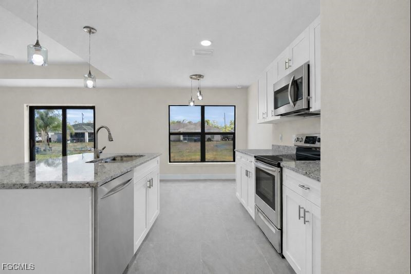 Seller wiling to help with closing cost .Brand new construction, move-in ready home featuring three bedrooms, two baths and 2 car garage . The property offers a lot of upgrades including tile throughout, wood cabinetry , granite countertops, and stainless steel appliances, also washer and dryer included. The garage floor is coated with the Situated on a quiet dead-end street with canal frontage, providing added privacy and a desirable waterfront setting