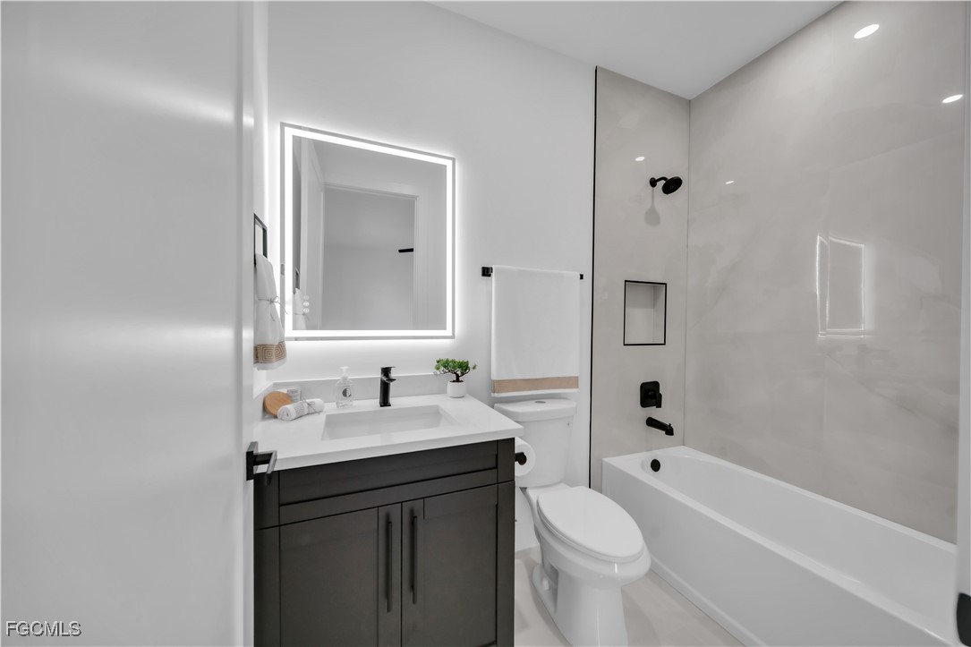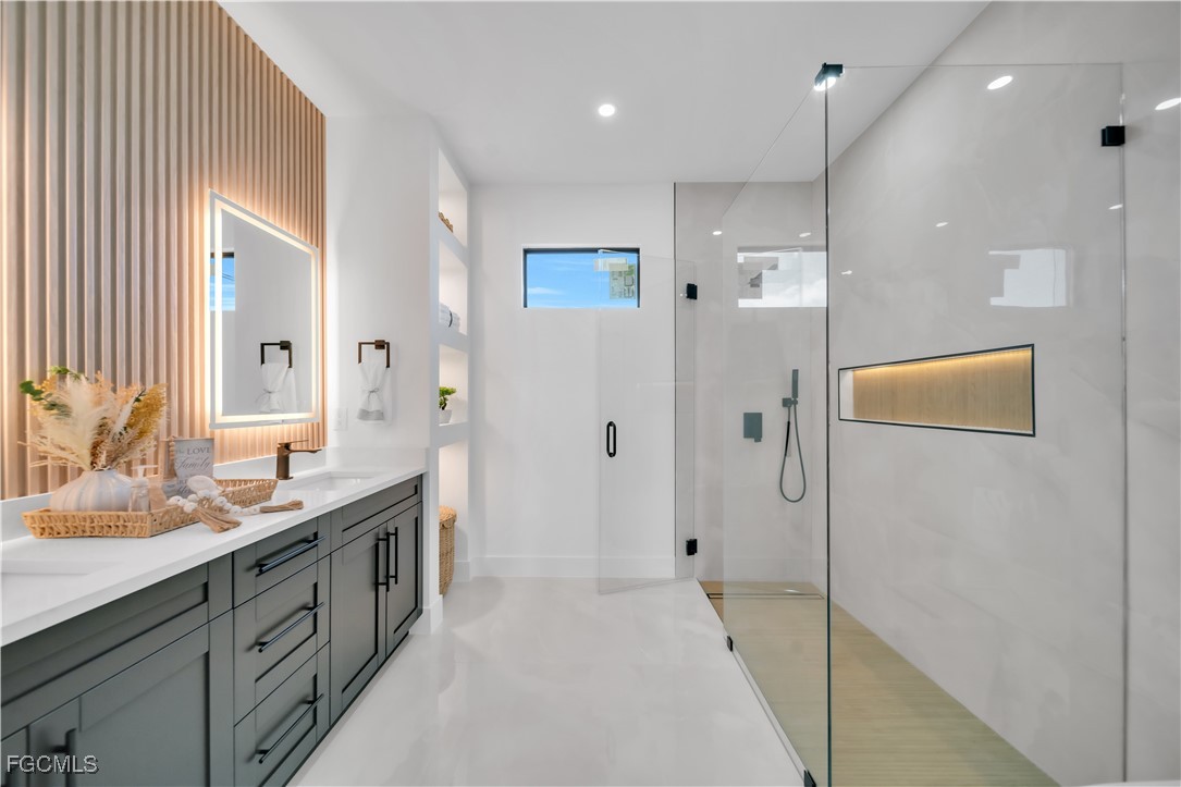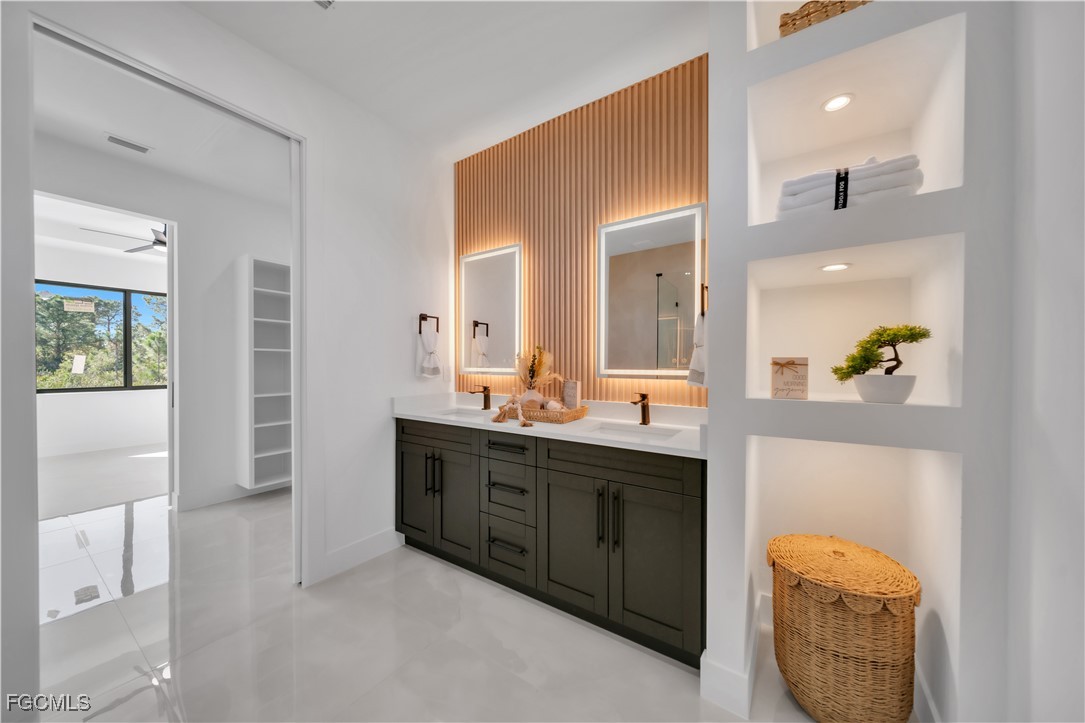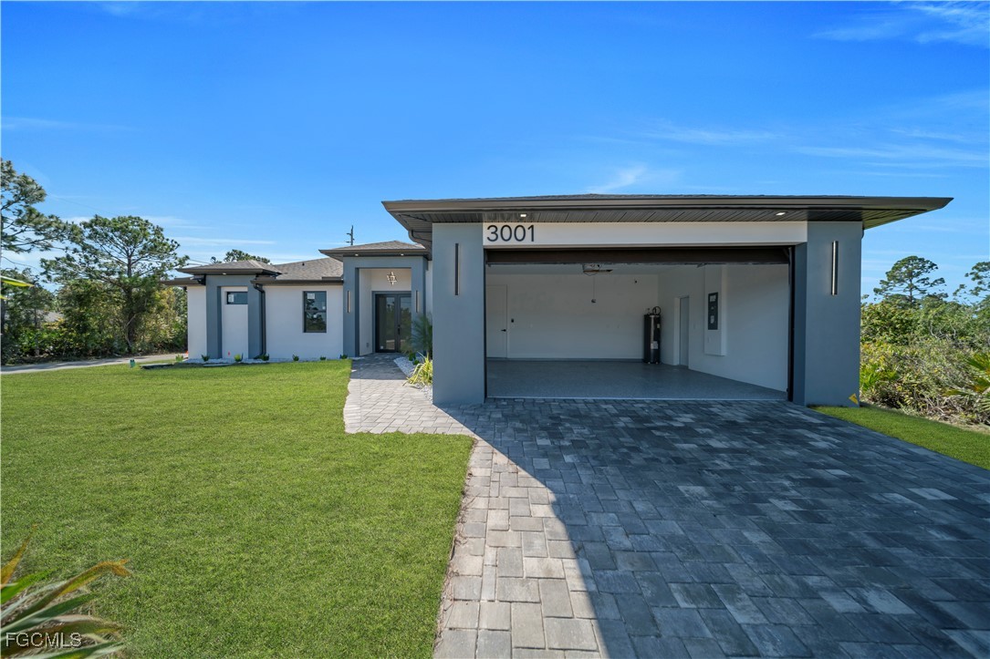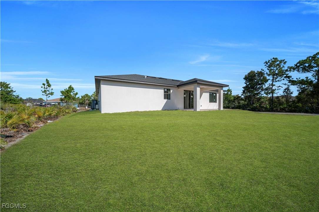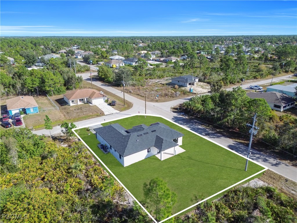 This exclusive 2026 new construction stands out on a prime CORNER LOT, offering enhanced privacy and superior curb appeal across 2,391 total sq ft. The thoughtfully designed layout features 4 bedrooms and 3 bathrooms, including a Double Master Suite and a versatile 4th bedroom perfect for a home office. Built for safety and efficiency, the home is fully equipped with impact-resistant windows and doors. The gourmet oversize kitchen serves as the heart of the home, boasting a 9-foot island, quartz countertops, full backsplash, and under-cabinet LED lighting. Luxury finishes abound, from floor-to-ceiling porcelain tile and smart mirrors to smart home technology. The exterior is built for durability and comfort, featuring an extended lanai and a 2-car garage both finished with high-end epoxy flooring, a paved driveway, a 4-station sprinkler system, and a modern high-efficiency water filtration and septic system. Take advantage of EXCLUSIVE INCENTIVES available for this model home, schedule your appointment today!
