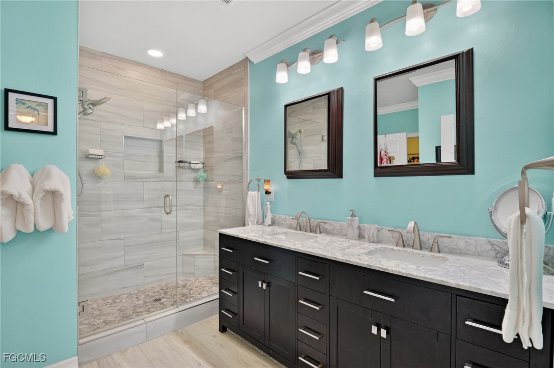 Modern Open Great Room Design With Large Kitchen Including A Spacious Island, Walk In Pantry, Upgraded Appliances, Ample Cabinetry, Granite Counters, Tile Backsplash And Whole Home Water Filtration System. The Private Owners Suite Includes His & Hers Customized Walk-In Closets, New Dual Sink Vanities And Tiled Walk In Shower With Frameless Enclosure. Some Of The Fine Features Of This Sparkling Home Include Nine Foot Ceilings, Plantation Window & Door Shutters, Crown Molding, New Flooring, Widened Paver Driveway, Screened Entry And Lanai, Upgraded Fans And Lighting Throughout, Overhead Garage Storage Racks, Rain Gutters, State Of The Art Protection Including Accordion Metal Shutters, Whole Home Surge Protection And Hard Wired Generator Hook Up And Is Not In A Flood Zone. Cascades At River Hall Is Vibrant 55+ Neighborhood With An Amazing Clubhouse, Resort Pool, Fabulous Exercise Gym, Tennis, Bocce & Pickleball Courts, Social Cubs And Activities Galore And Is Pet Friendly, Perfect For Meeting New Friends! The Very Reasonable Dues Include All That And Full Cable, Internet, Lawn Care And A Gated Entrance. Set On A Spacious Southern Exposure Lot, Perfect For A Pool Or Play Area And Close To Golf, Shopping, Restaurants, I75, RSW & PGD Airports, And Convenient To The Award Winning Beaches Of Southwest Florida. Visit This Amazing Home Today!
