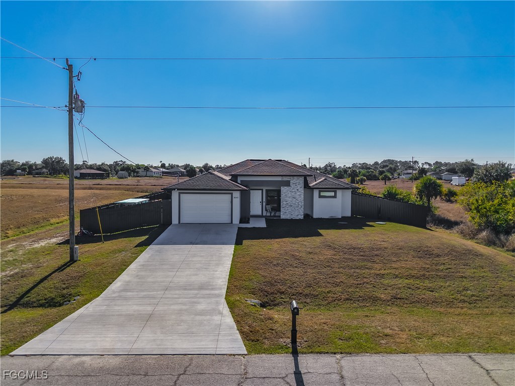 Nearly new single-owner home in LaBelle, FL, built just about a year ago and truly move-in ready. Enjoy custom electric window treatments and a new bronze-colored metal fence enclosing the backyard, offering style, privacy, and convenience from day one. Tile throughout, oversized lot, ceiling fans, soft-close cabinetry, and impact windows.