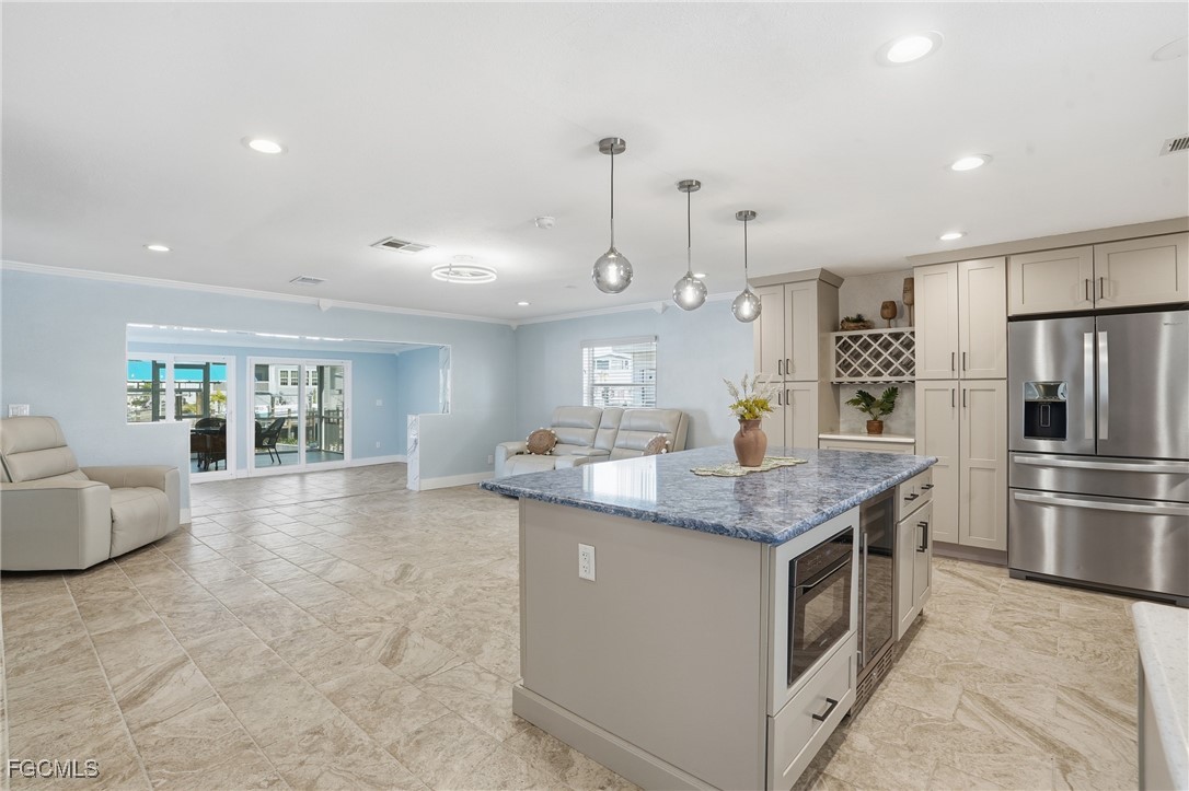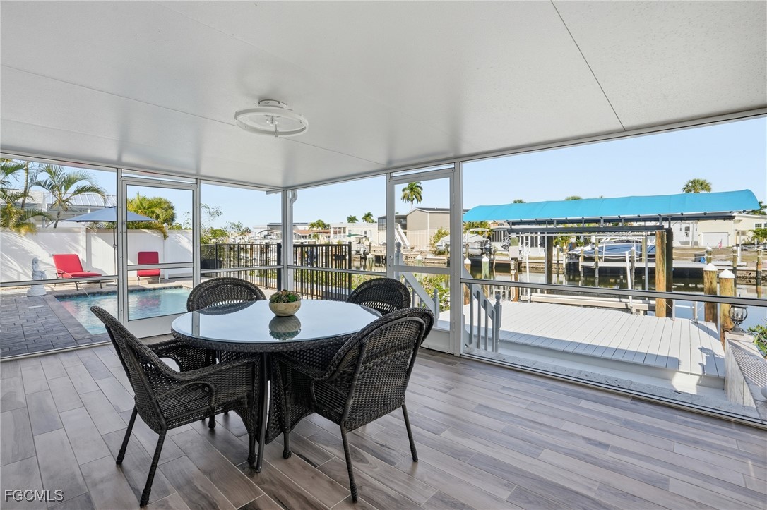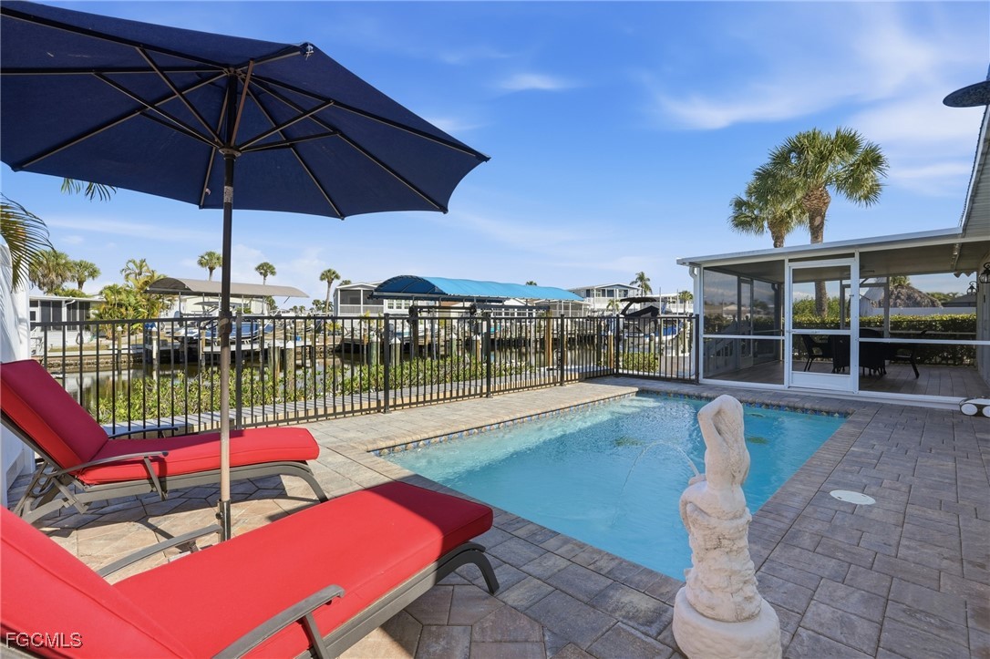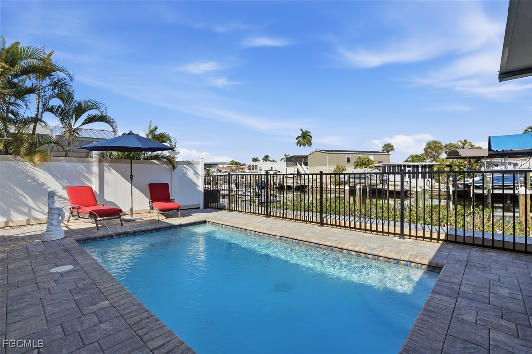Embrace the ultimate Fort Myers Beach waterfront lifestyle in this canal-front retreat, designed for effortless coastal living and boating enthusiasts. This spacious 3-bedroom, 2-bath pool home sits in a desirable boating community with direct Gulf access, placing open water, island hopping, and sunset cruises just minutes from your backyard. A welcoming courtyard-style entrance sets a relaxed, resort-like tone and hints at the unique character found throughout the home. Inside, an open and airy layout flows seamlessly, ideal for entertaining after a day on the water. The updated kitchen anchors the living space with gray cabinetry, a striking copper sink, stainless steel appliances, pot filler, wine cooler, and a large island—perfect for gathering with friends and family. Both bathrooms have been tastefully updated, including a guest bath with a jacuzzi tub for post-boating relaxation. Step outside to your private saltwater pool overlooking the canal, where mornings begin with peaceful water views and evenings wind down dockside. A boat lift and quick Gulf access make spontaneous adventures effortless, while modern upgrades like impact windows, updated lighting, generator readiness, EV charger capability, and more ensure comfort and peace of mind. Just minutes from the beach and open Gulf waters, this home delivers the laid-back, waterfront lifestyle Fort Myers Beach is known for—where every day feels like a vacation.