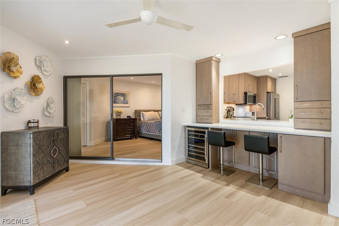 Step inside, and you’ll be wowed by the MODERN decorating and soaring great room with views of the Twin Isles golf course. The huge lanai is perfect for enjoying the sunset, swaying palms, and entertaining friends and family al fresco. The kitchen? It’s showstopper! With all-new appliances, an induction range, lighted back painted glass face, sleek quartz countertops with a waterfall, breakfast bar, custom cabinets and a pantry. It’s a space that will inspire your inner chef.