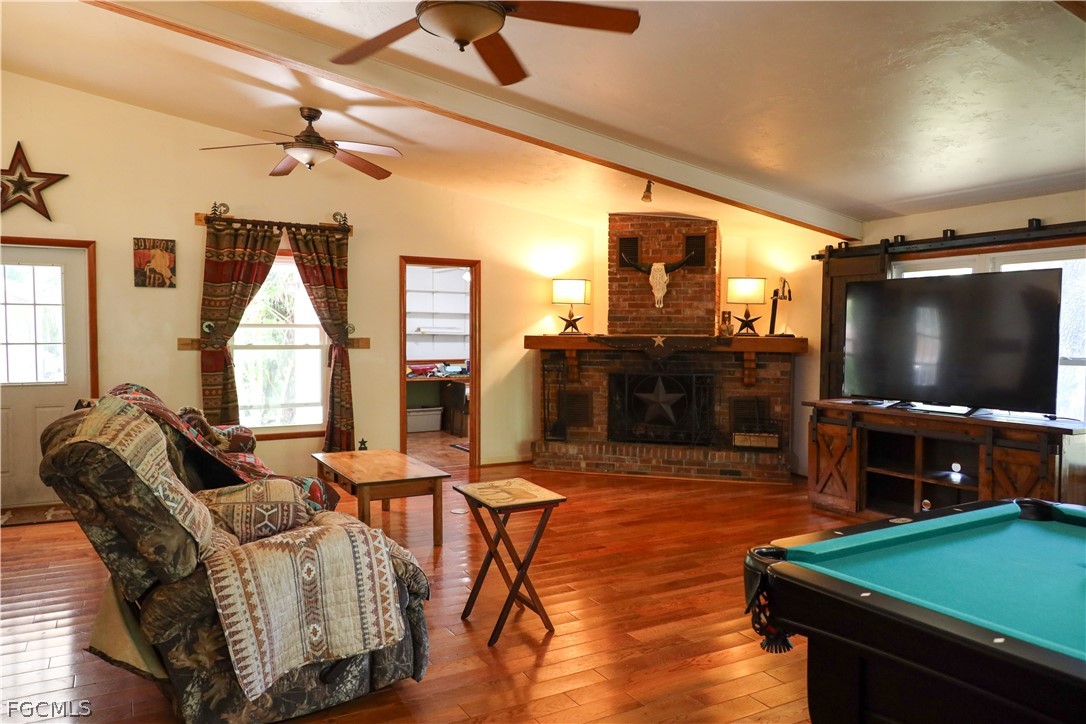 BUYERS, INVESTORS THIS IS THE ONE!? Come take a look at this beautiful home located in the heart of LaBelle WITH ACREAGE! This updated 4BR/2BA was built with family fun & entertainment in mind and delivers over 2500 sq. ft. of open fabulous living space. Complete with a detached 1/1 cottage (in-law space or rental income), an additional buildable home site (confirm with building & zoning for details), RV parking, a detached double carport with a 20X24 workshop, containing plenty of extra storage and plenty of acreage for gardening, planting, farming and so much more. The home office space includes a separate outdoor entrance. Enjoy the maintenance free Galvalume roof, Hardie-Plank siding & hardwood flooring which add extra value to this precious gem! Enter through an inviting Great Room which boasts beams to a soaring vaulted ceiling and brick wood burning fireplace. Cook and entertain in the formal living and or dining rooms, and relax afterwards in the oversized back screened in lanai with your favorite drink or desert! All of this on 1.66 oak covered acres situated on the corner of two paved streets with central utilities. Within walking distance of the Library, Post Office, the Caloosahatchee River, shopping, dining. schools and an easy commute to Ft Myers