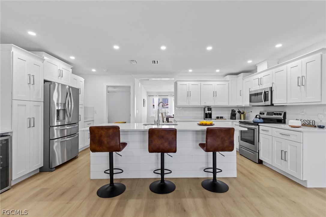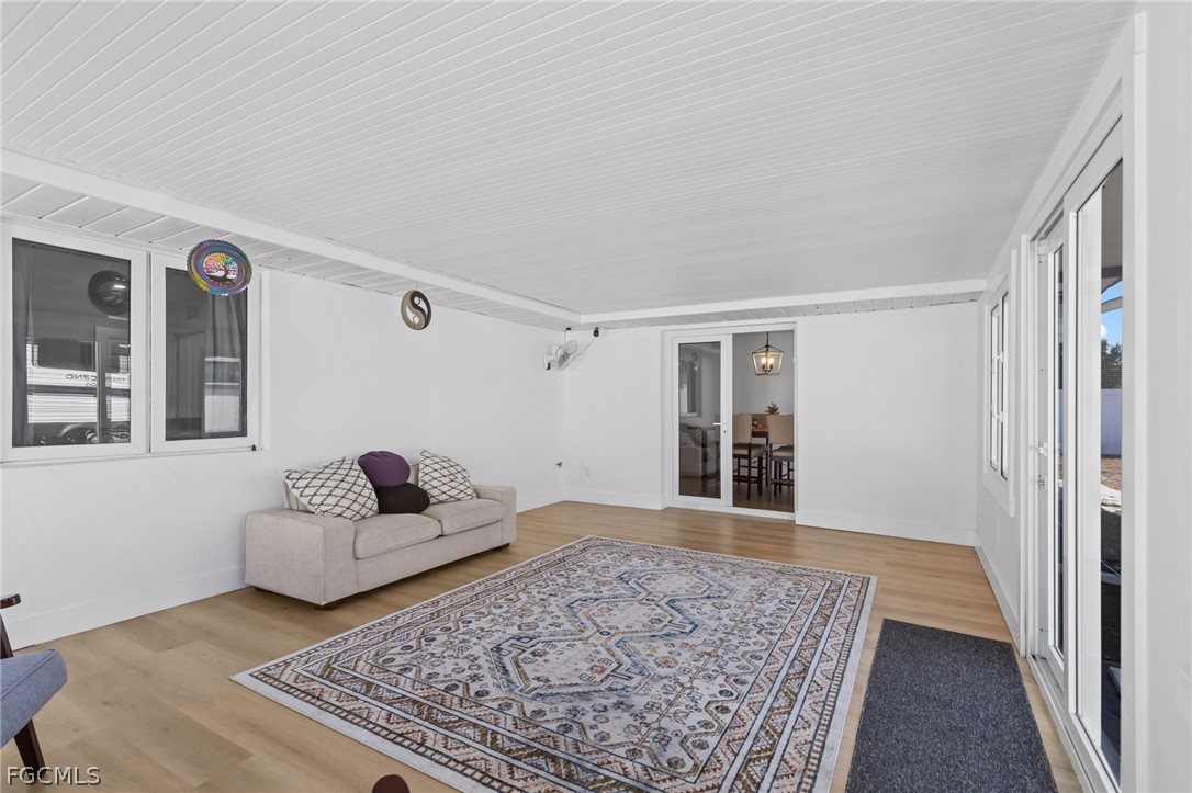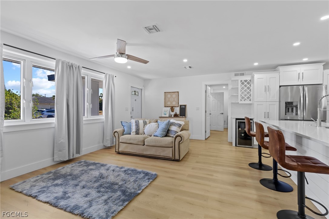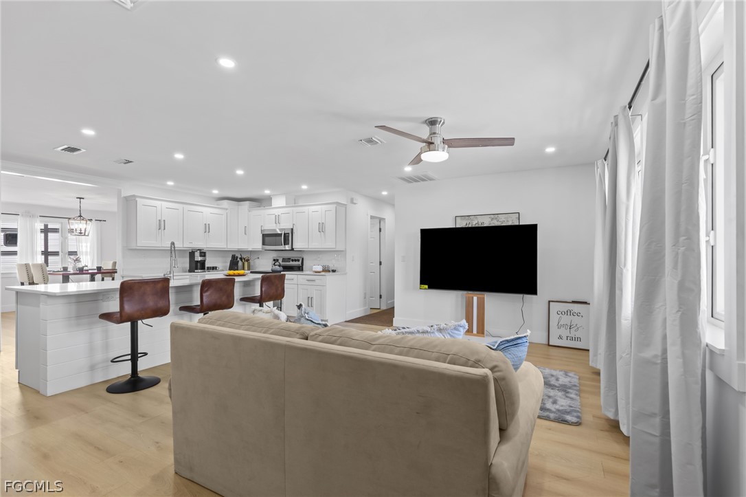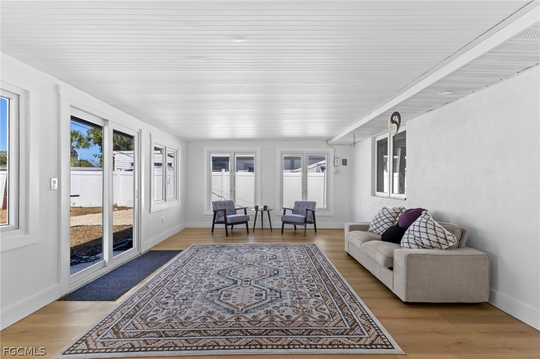 Welcome to this beautifully remodeled 3 bedroom, 2 bathroom home in the heart of Bonita Springs, offered turnkey and ready for immediate enjoyment. With no HOA, you’ll enjoy added flexibility and freedom. This home is not in a flood zone and has hurricane rated doors and windows providing extra peace of mind. Inside, a light and bright open layout creates an inviting atmosphere. The spacious living area flows seamlessly into a stunning kitchen featuring a large island with breakfast bar seating, quartz countertops, stainless steel appliances, and generous storage. The dining area sits just off the kitchen, keeping everything connected and ideal for gathering. An expansive sunroom adds exceptional versatility, perfect as a second living space, office, fitness area, or hobby room. The primary suite is a true retreat with a huge walk-in closet and a beautifully updated en-suite bath complete with dual sinks and a walk-in shower. Two additional bedrooms are comfortably sized and share a full guest bath. Outside, the spacious yard offers plenty of room to relax or entertain, including the ability to park an RV on your own property. A 2-car garage includes a remote-operated garage door opener with built-in camera capability, and the home is equipped with a security system for added peace of mind. Drive just minutes to Barefoot Beach and enjoy some of Southwest Florida’s most beautiful shoreline. Modern updates, thoughtful features, and a prime location close to shopping and dining make this move-in-ready home a standout opportunity!