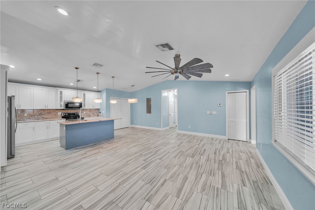 Spacious 2,071 sq ft single-family home featuring 5 bedrooms and 4 bathrooms with a functional layout ideal for multi-generational living. Within the 5 bedrooms, two offer private exterior access, providing added privacy and flexibility for guests or extended family. Open-concept kitchen with island, granite countertops, stainless steel appliances, pantry, high ceilings, and decorative lighting. impact windows provide abundant natural light. Large screened front porch perfect for enjoying the Florida weather, fenced yard, and ample parking space. Property is connected to city water and located in an excellent residential area close to shopping, schools, and main roads for convenient everyday living.