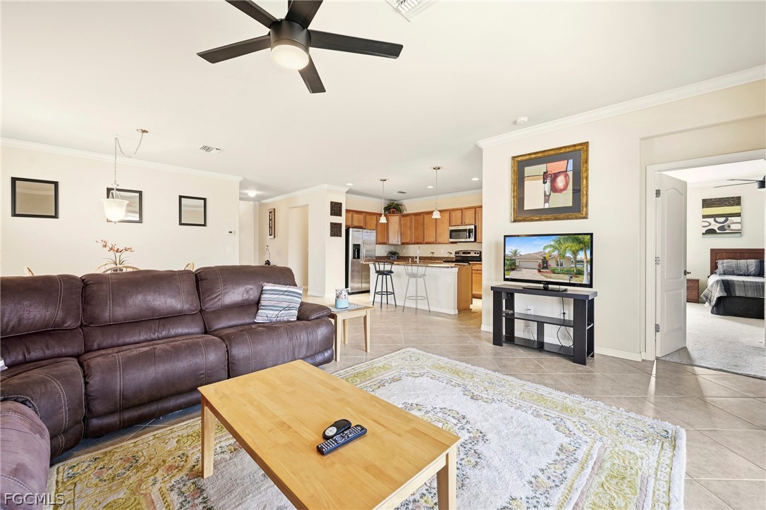 ESCAPE TO LAKESIDE SERENITY IN OLYMPIA POINTE: Welcome to your private lakeside sanctuary at 11422 Icarus Circle, a stunning 4-bedroom, 3-bathroom residence where modern luxury meets the tranquil beauty of Southwest Florida living being sold Turn-Key. Nestled at the end of a Cul de Sac within the prestigious gated enclave of Olympia Pointe, this move-in-ready gem is designed for those who appreciate both style and soul. A VIEW THAT CAPTURES THE HEART. The true magic of this home reveals itself the moment you step toward the back. Boasting the highly coveted Southwest rear exposure, your expansive screened lanai becomes a front-row seat to Florida’s legendary golden-hour sunsets. Imagine ending every day with a glass of wine, overlooking the glistening lake and the soothing rhythm of the community fountains—a view that promises instant relaxation. INSPIRED INTERIORS. Spanning over 2,030 square feet of air-conditioned living space, the open-concept layout feels airy and bright, bathed in the natural light that only a southwest-facing lot can provide. The heart of the home features a sleek kitchen with granite countertops and stainless steel appliances, flowing effortlessly into the main living areas adorned with easy-to-maintain tile flooring. Whether you are hosting holiday gatherings or enjoying a quiet morning coffee, the transition between indoor comfort and outdoor beauty is seamless. RESORT LIVING EVERY DAY. Life in Olympia Pointe feels like a perpetual vacation. Just a short stroll from your front door, you’ll find a suite of amenities that cater to every lifestyle: The Clubhouse: A social hub featuring a billiards room, library, and community kitchen.