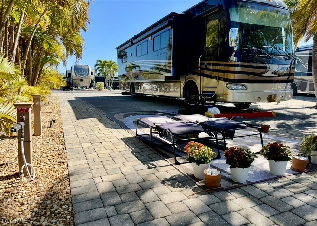 Discover Your Slice of Paradise at Gulf Waters RV Resort This exceptional lake front RV lot offers an unparalleled opportunity for those seeking a luxurious outdoor lifestyle, just minutes away from the stunning shores of Fort Myers Beach, Sanibel, and Captiva Islands. This prime lot is not only ready for your RV but also boasts a host of amenities designed for relaxation and recreation. Recently enhanced with an expanded paver patio area and lush landscaping, this RV lot is a true gem. It is golf cart and pet-friendly, making it the perfect spot for families and animal lovers alike. Gulf Waters RV Resort is a premier destination, offering a wealth of amenities including a spacious clubhouse, a heated pool and spa, and a lively poolside tiki bar that operates during the season. Enjoy a game of pickleball on one of the eight courts available, or take advantage of the on-site laundry facilities, complimentary Wi-Fi, and varied electrical service options (20/30/50 amp) along with cable access. Imagine spending your mornings watching breathtaking sunrises over the lake, taking refreshing dips in the heated pool, or sipping cocktails at the tiki bar while enjoying live music. Gulf Waters RV Resort is designed for both social engagement and peaceful retreats. Participate in a wide array of scheduled activities or simply unwind with new friends in this welcoming community. Conveniently located just 4 miles from the beautiful Fort Myers Beach, the resort provides easy access to local attractions. You can stroll to the nearby trolley station, hop on a trolley, or explore the area on your bicycle. The resort is also in proximity to a variety of restaurants, shops, and entertainment options, ensuring that you have everything you need at your fingertips during your stay in this tropical paradise. The community itself is fully gated, enhancing your security and peace of mind. You’ll find recycling bins and dumpsters conveniently located near the clubhouse, making it easy to maintain a clean and eco-friendly environment. The RV lot includes a sturdy cement slab, complete with electric and water hookups, making it ready for your immediate enjoyment. Don’t miss out on this incredible opportunity to own a gorgeous RV lot at Gulf Waters RV Resort. Experience luxury RV living in a peaceful and picturesque setting, with the beach just a short drive away. Whether you are looking for a seasonal getaway or a permanent residence, this property has it all. Embrace the lifestyle you’ve always dreamed of—schedule your visit today and take the first step towards making this beautiful RV lot your own!