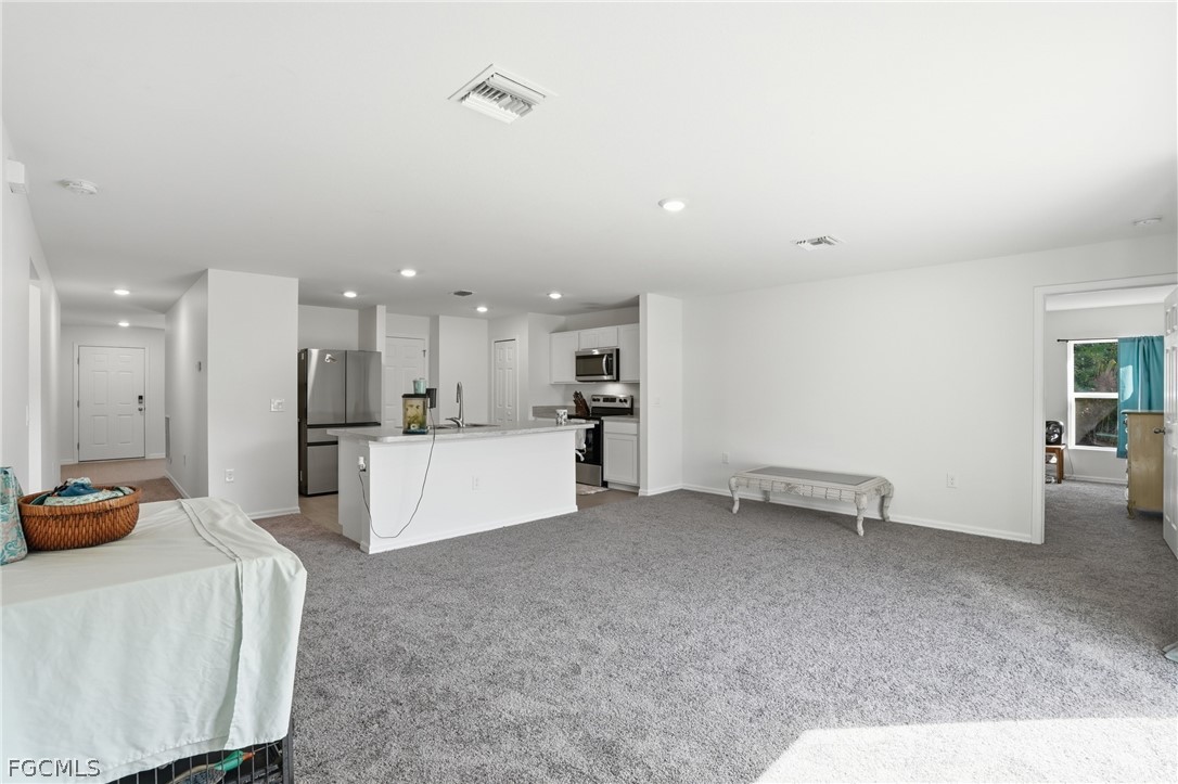 Inside, the open-concept floor plan creates a seamless flow between the living, dining, and kitchen areas, making everyday living and entertaining effortless. The kitchen features abundant counter space, stainless steel appliances, and a layout designed for both functionality and connection.