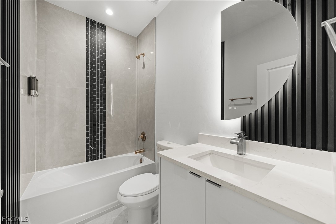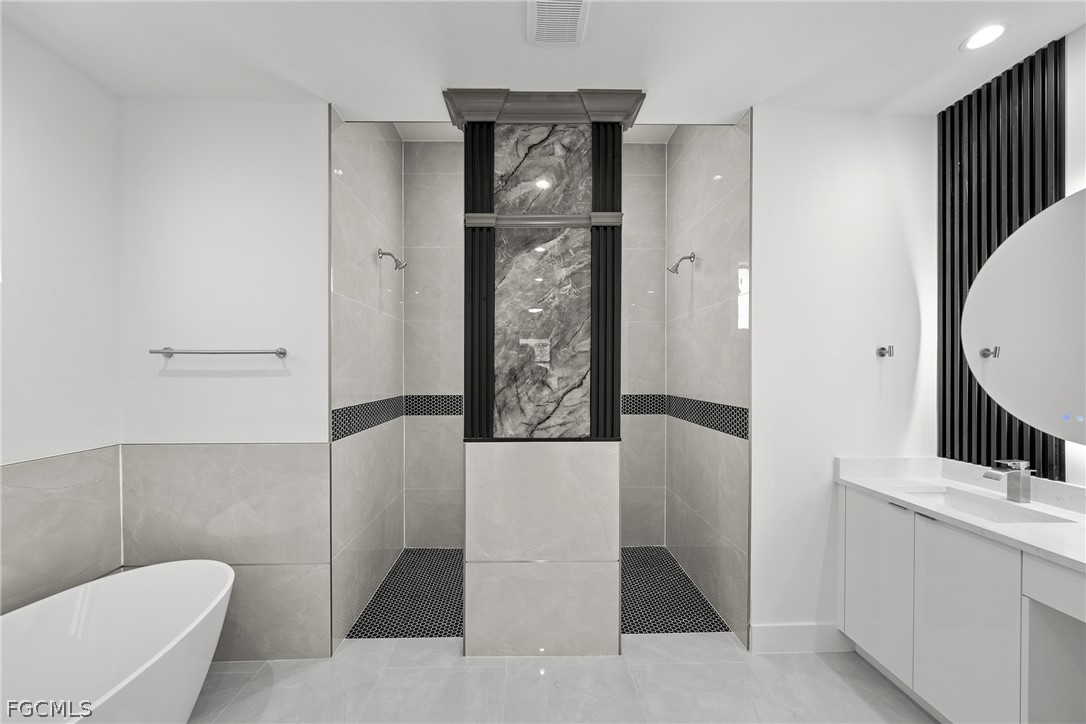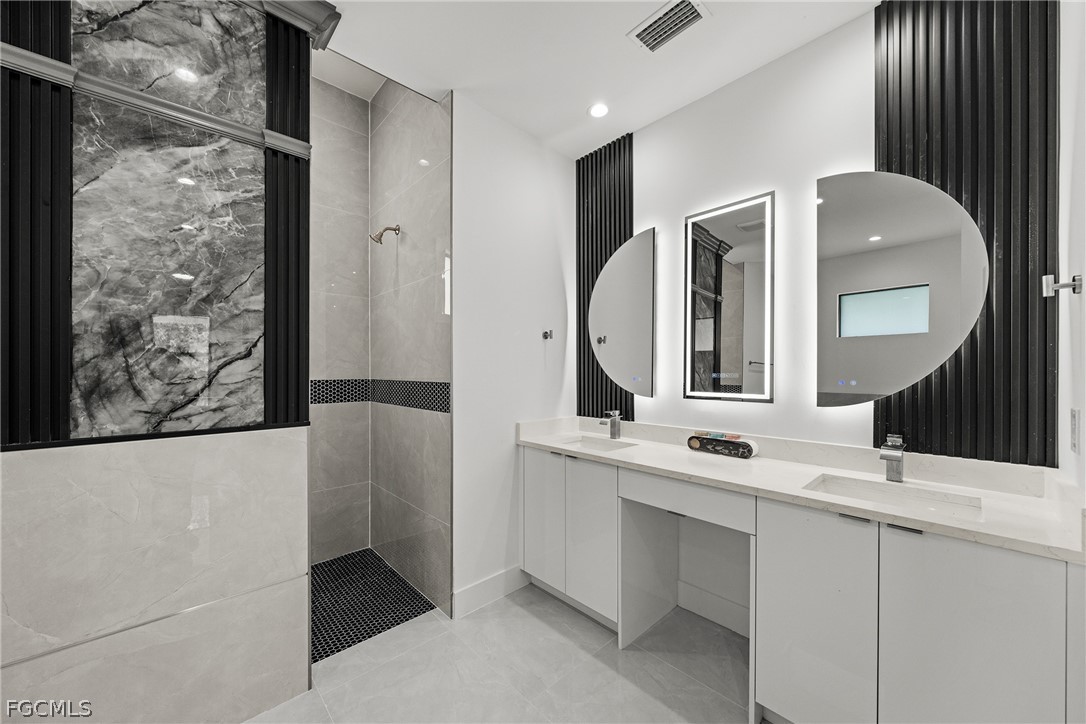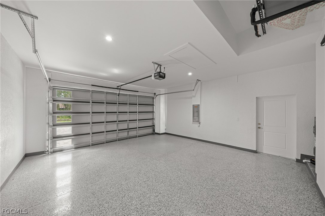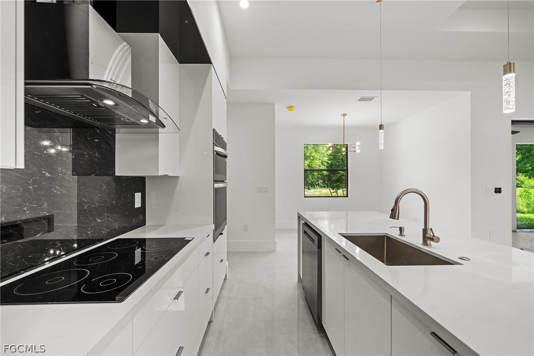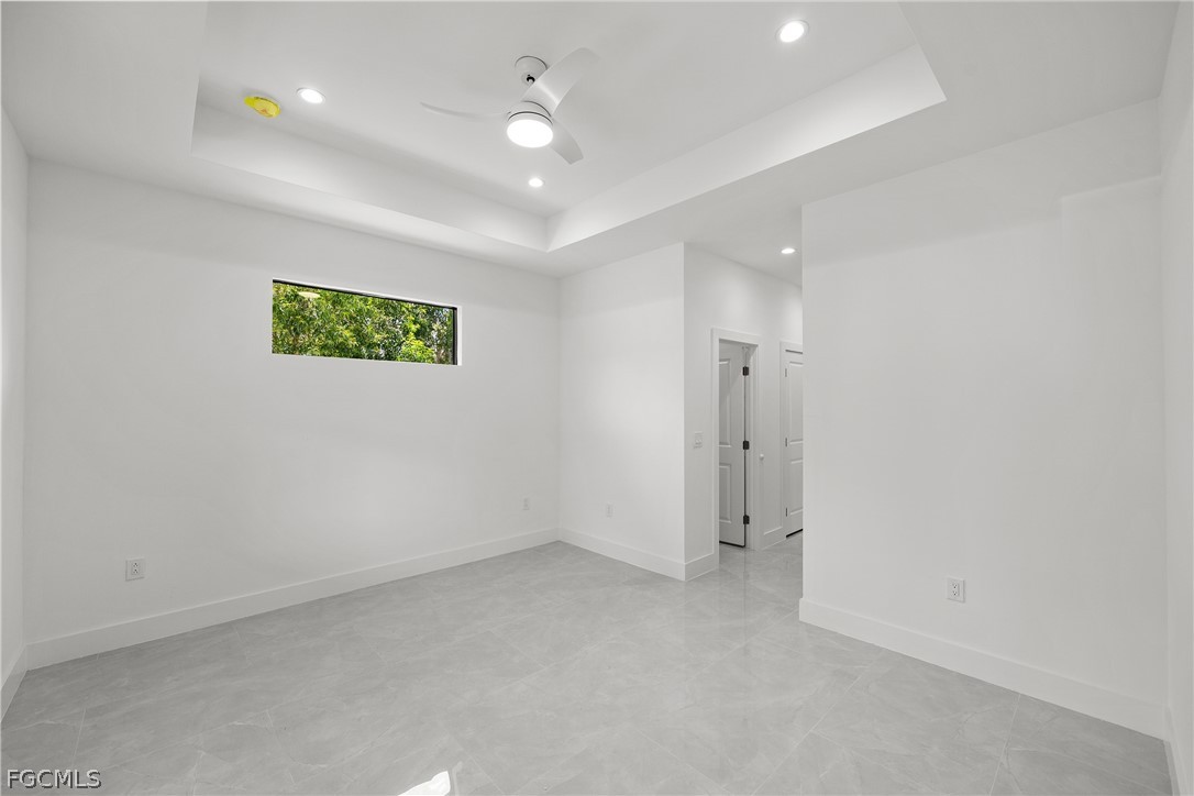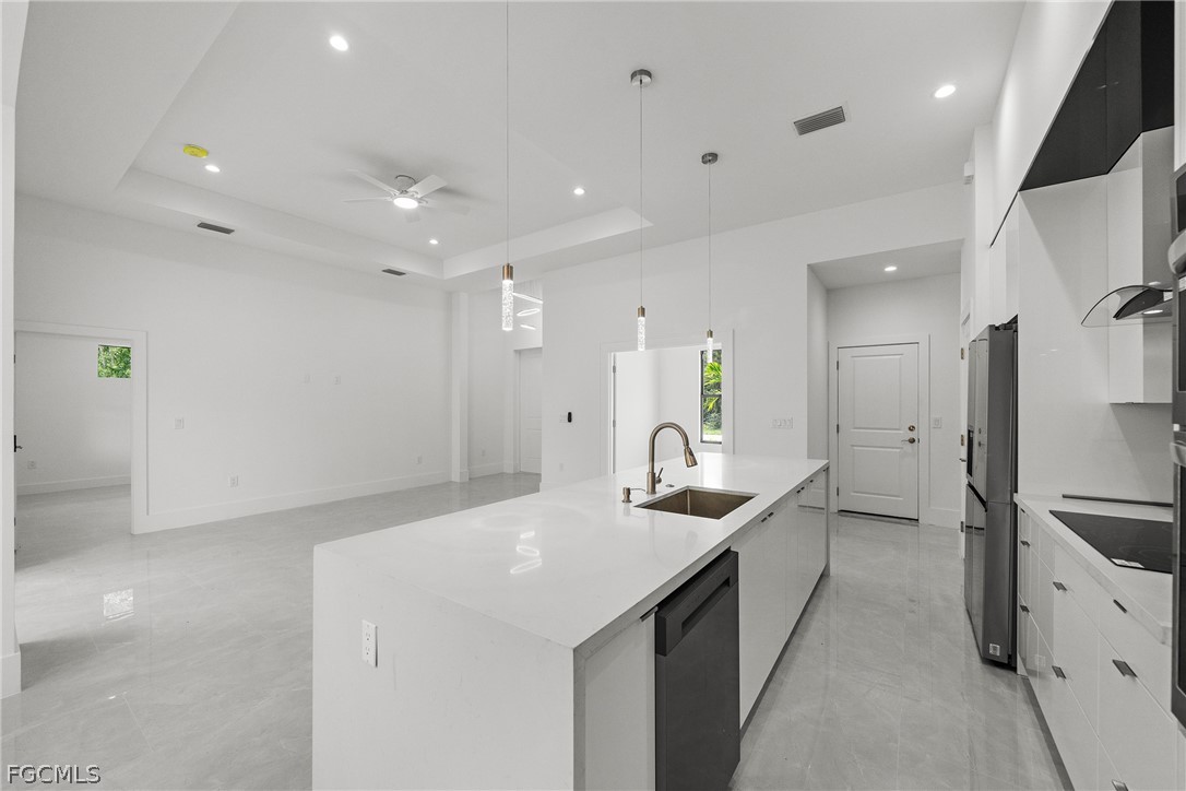 ***New Construction | Semi-Custom | Premium Upgrades Throughout*** NO FLOOD ZONE!!! Newly built semi-custom residence offering 3 bedrooms + den, 2 baths, and a thoughtfully designed open-concept floor plan with 10' ceilings and an 11' tray ceiling in the main living area and primary suite. Large-format 24"x48" porcelain tile runs throughout the home. The kitchen features stainless steel appliances with wall mounted combo oven/microwaves, and over the cooktop hood. Solid wood cabinetry, quartz countertops with accent color full-height backsplash. Primary suite includes dual walk-in closets with dual-sink vanity, freestanding soaking tub, oversized walk-through shower with dual shower heads. Guest bath provides direct lanai access (ideal for future pool bath). Sliding glass doors open to the covered, epoxy finished floor lanai for seamless indoor-outdoor living and enterteinment. Additional features: Impact-resistant windows and doors, Epoxy-coated garage and lanai floors, Paver driveway and entry, Bahia sod with automatic irrigation system. SCREENED-IN LANAI, not shown in pictures. Located in a rapidly Lehigh growing area with convenient access to major roadways, Road 82, Daniels Pkwy, Colonial Blvd, I-75.