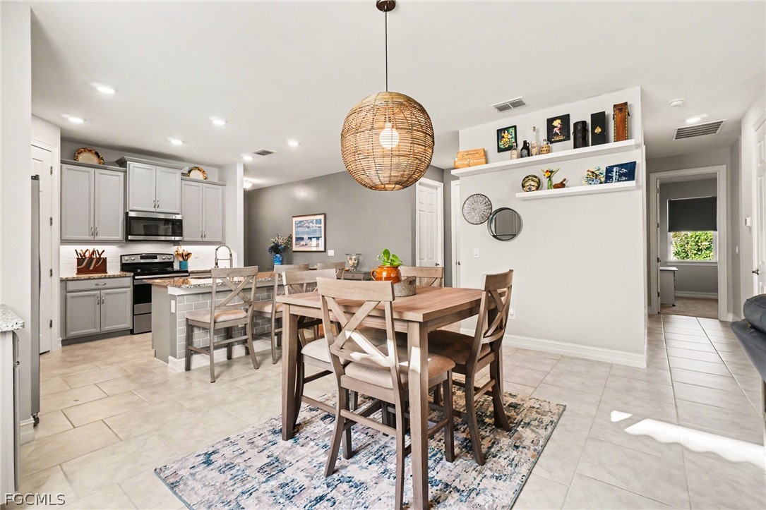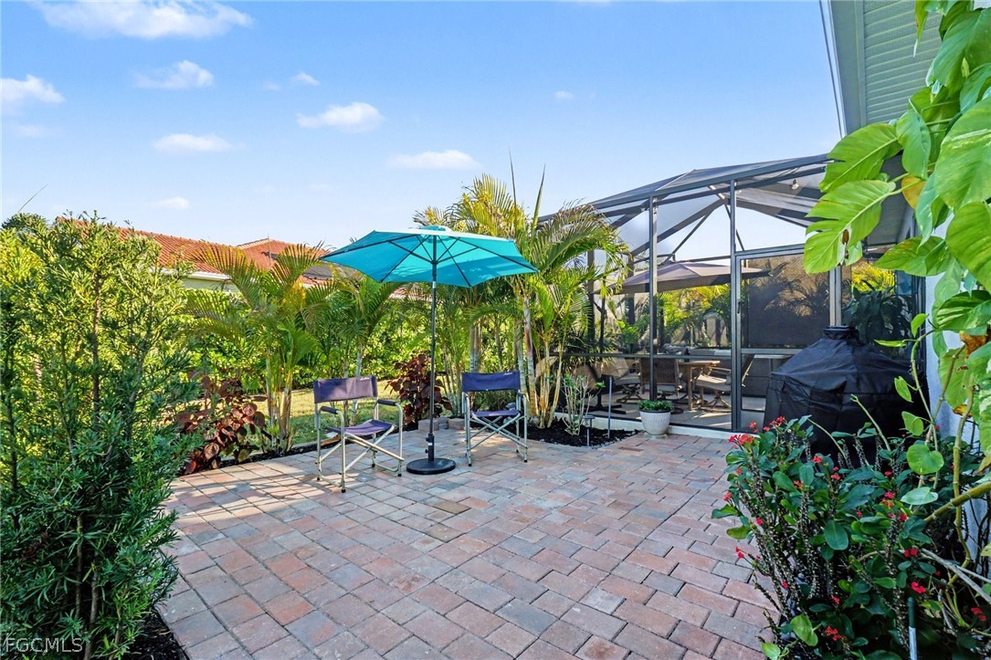 EXPERIENCE MODERN LUXURY AND YOUR VERY OWN PRIVATE TROPICAL PARADISE and a 2.5 CAR GARAGE - ALL IN THE HEART OF MAGNOLIA LANDING! Step into this beautifully updated home where every detail has been thoughtfully designed for style and comfort. -Nestled among mature landscaping with charming cement curbing, this residence boasts a sophisticated palette of grey cabinetry with finished trim molding on top and below, complemented by soft grey ceramic tile on the front of the bar. Under-cabinet lighting and a stylish backsplash enhance the kitchen’s modern appeal, while additional cabinets, cupboards, and matching backsplash in the dining area create seamless continuity. -Warm grey accent walls flow throughout the home, paired with new fans and lighting to brighten every space. Tile flooring extends throughout (no carpet here), while upgraded accordion fabric shades and blinds on sliding door add both elegance and functionality. Closets have been completely redone, offering organized and welcoming storage in every room. -The laundry room continues the high-end finishes with matching cabinetry, backsplash, shelving, a mud sink, and an upgraded Samsung washer and dryer. -Step outside to your private tropical oasis, framed by lush trees providing natural privacy. Relax on the lanai, soak in the hot tub, or entertain on the outdoor patio—your personal retreat awaits. -All of this is located in the desirable Magnolia Landing community, offering a serene, family-friendly neighborhood with easy access to local amenities.
