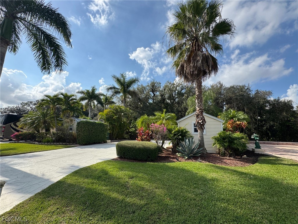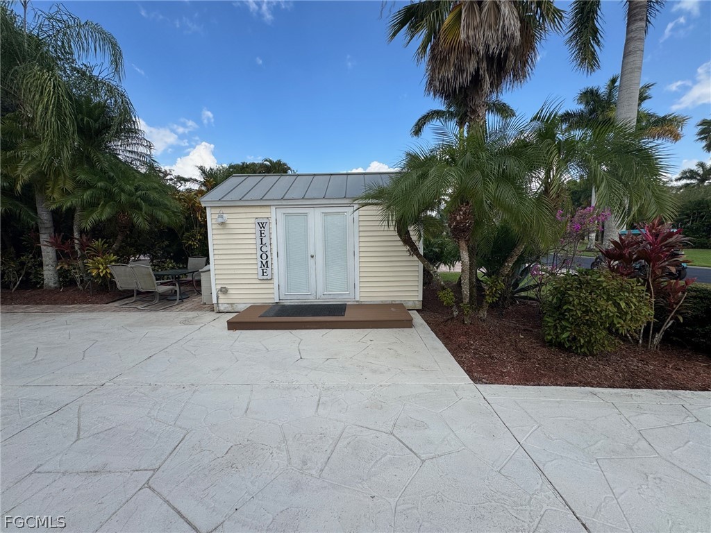 Tucked into a quiet, tree-lined corner of RiverBend Motorcoach Resort, Lot 300 feels like a hidden retreat waiting to be discovered. You turn in, ease onto the pull-in pad (no complicated maneuvering here), and immediately notice how still it is. Not just “resort quiet.” Real quiet. The kind where you hear the breeze moving through the trees, birds chirping in air. Because instead of another coach, the backdrop is a wooded preserve. No neighbors to look at or behind you. No need to draw the shades. Just nature doing what nature does. Across the street? A wide stretch of green common area that makes everything feel even more open. It’s the kind of setting where mornings linger a little longer and coffee tastes a little better. Afternoons are especially sweet here. Generous shade keeps things comfortable, and being near the river and River Clubhouse means you’re close enough for social gatherings, yet perfectly positioned for peaceful retreat. The lot itself is stamped concrete with paver accents that elevate the patio and side areas. Then there’s the coach house, charming, practical, and welcoming. French doors with built-in blinds open into a cozy interior complete with a kitchenette, washer and dryer, refrigerator, closet, shower, and toilet. Everything needed for comfort and convenience. Even better? A table and chairs convey with the property, along with all appliances. It’s set up and ready to enjoy from day one. Picture this, the perfect blank canvas to build exactly to your taste, expand the pavers, design a larger coach house, add an extended screened-in room for breezy evenings, the hard part is dreaming it up. The choice to make it yours is easy. Life at RiverBend unfolds at just the right pace. Morning golf cart rides along the Caloosahatchee River. Pickleball games with friends. Sunsets by the clubhouse. Soaking in the hot tub at the pool cabana. And in season, a vibrant calendar filled with clubs, games, laughter, and community under the grand oak trees. Lot 300 isn’t flashy. It doesn’t need to be. It’s peaceful. It’s private. It’s quietly special. And sometimes, that’s exactly what makes a place unforgettable.