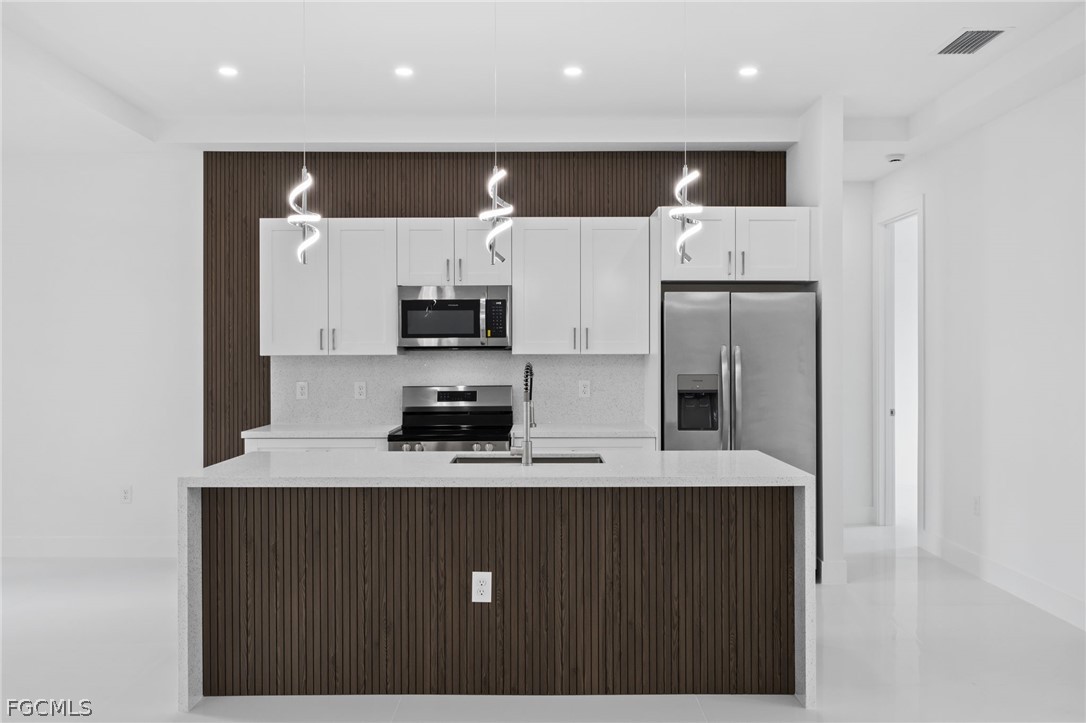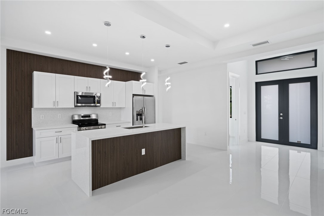 READY TO MOVE IN!!! Spacious open floor plan with 3 bedrooms + Den, 2-full bathrooms and 2 cars garage, home spans 2,005 sq ft. Hurricane impact windows and doors. Home features a state-of-the-art kitchen equipped with stainless steel appliances, high-quality cabinetry, quartz countertops and backsplash, and a waterfall edge island. The master suite offers comfort with the spacious master bathroom providing an elegant retreat with a double sink vanity and a frameless glass shower. Imported oversize porcelain flooring, dual walking closets and lofty ceilings flow throughout, elevating the modern feel of the property. Blending modern design with high-end finishes. Outdoors a beautifully landscaped garden with a covered lanai. The driveway goes all the way down to the double garage entry door. This street offers peace and quiet along with added safety for the family. This house is a great choice for anyone looking for a harmonious blend of modern design and comfortable living. This property is just what you're looking for. Don't miss the opportunity to own this beautiful property. Make this your dream home now. Ready to move in !!! Enjoy an outstanding home that perfectly combines comfort and luxury!!!!