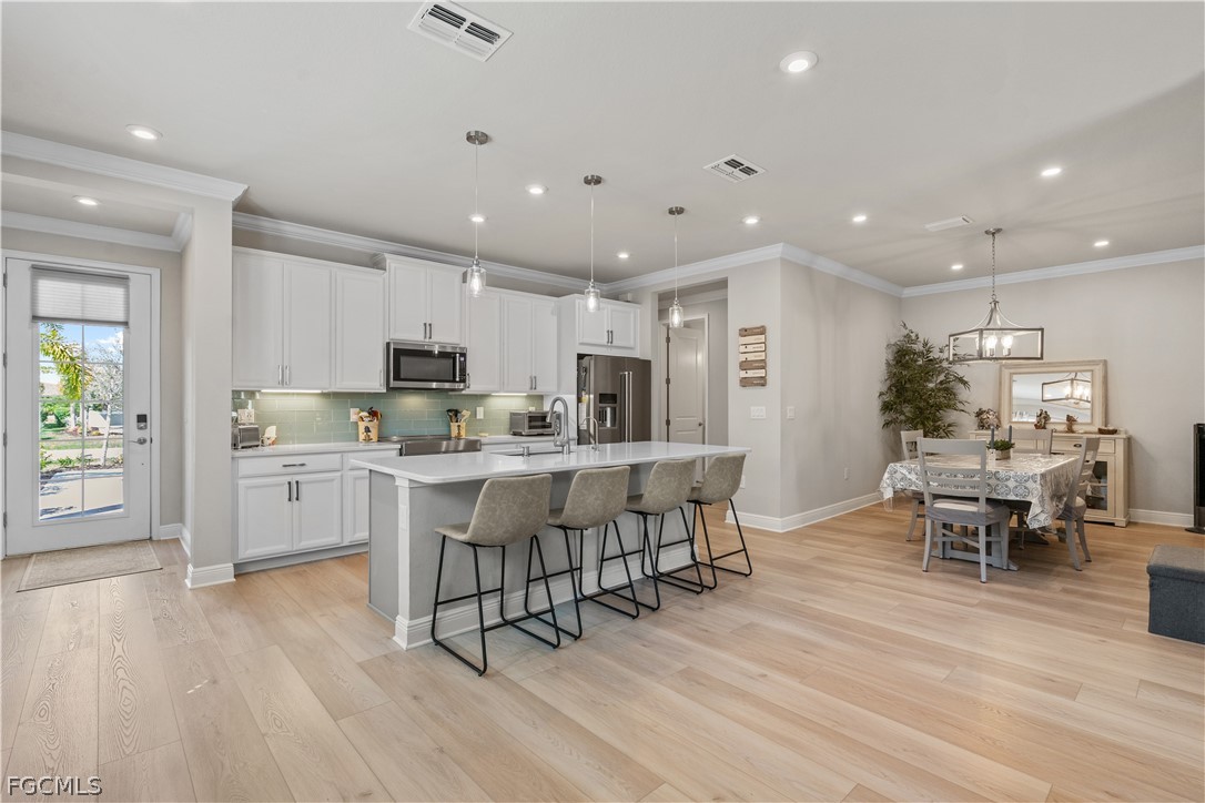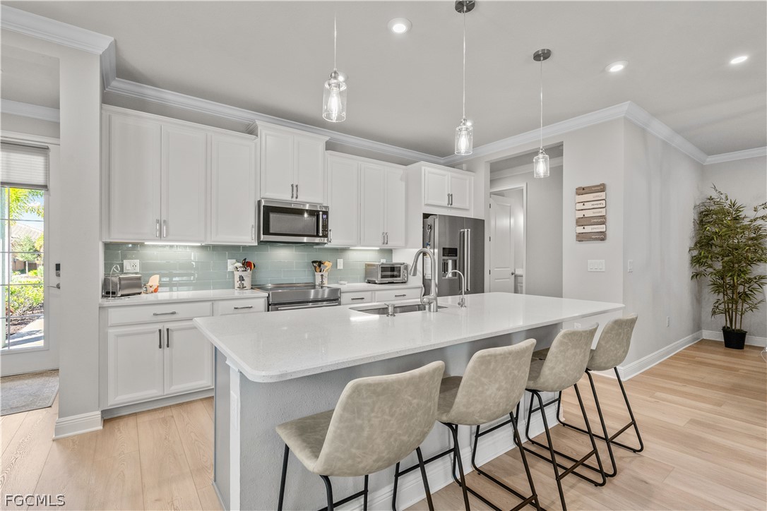 Welcome to Bonavie Cove. This stunning Oceana model, built in 2022, offers 2 bedrooms, 2 bathrooms, and a bright, open-concept floor plan designed for comfortable everyday living and effortless entertaining. Extensively upgraded by the current owner, this home is better than new. Upgrades include IMPACT windows and doors, luxury vinyl plank flooring throughout, quartz countertops, premium KitchenAid appliances with an induction range, a high-efficiency tankless water heater, and a whole-home water purification system. The primary bathroom has been completely reworked and is unlike any other in the neighborhood. The garage has been enhanced with durable epoxy flooring while additional custom storage closets add both function and convenience. Step outside to your extended paver lanai, where you’ll enjoy a private, peaceful setting ideal for relaxing or hosting guests. Bonavie Cove offers resort-style amenities including a sparkling community pool, fire pit, fitness center, dog park, and thoughtfully designed outdoor gathering spaces. Ideally located with quick access to I-75, RSW International Airport, Downtown Fort Myers, Southwest Florida’s world-famous beaches, and an abundance of shopping and dining options, this home delivers both lifestyle and convenience. Opportunities like this don’t last — schedule your showing today.