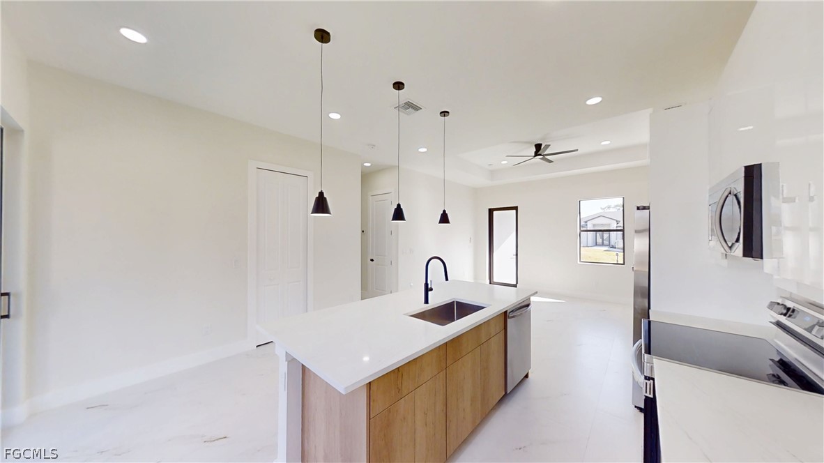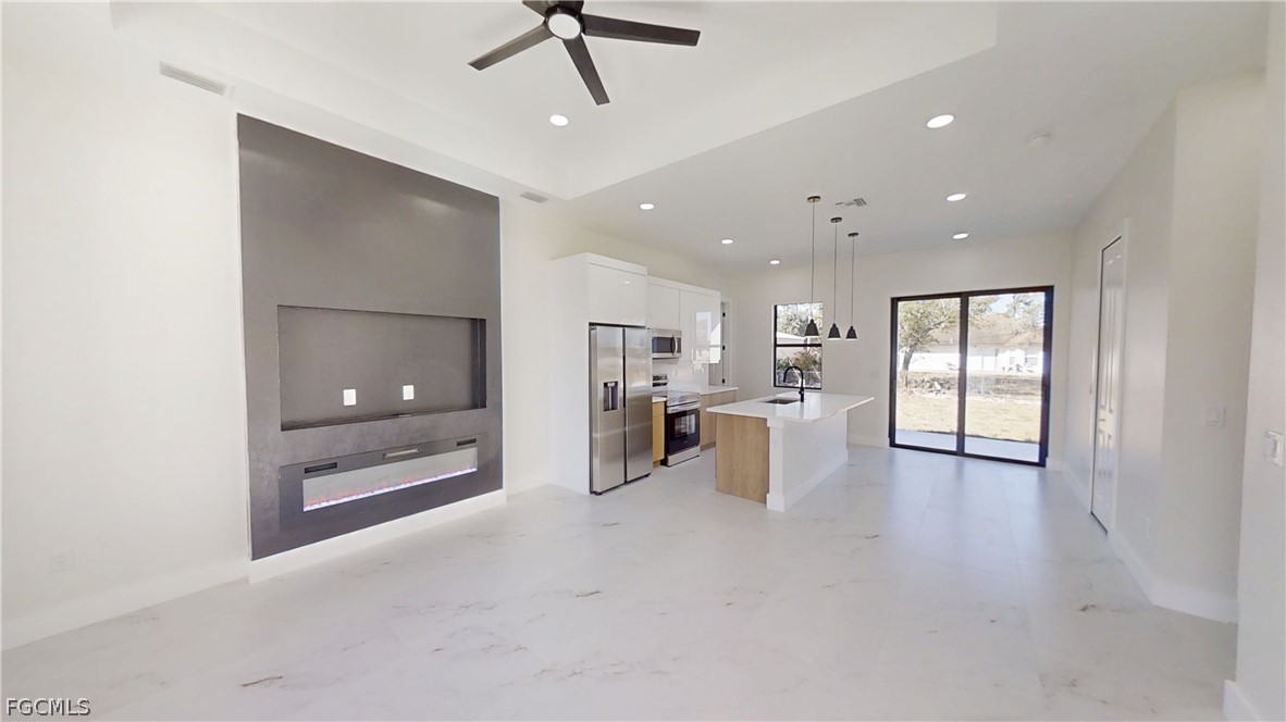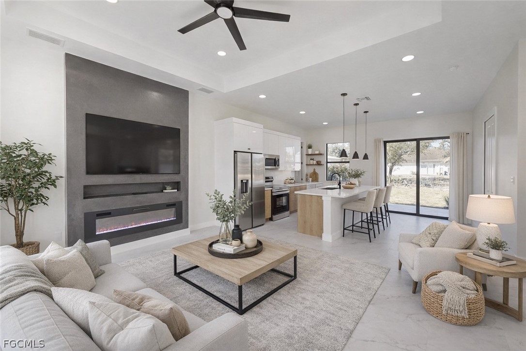 Modern Corner-Lot Beauty in Prime Lehigh Acres Location! Seller credit towards closing available. Welcome to this stunning new construction home ideally located just off Lee Blvd in the heart of Lehigh Acres, FL. Sitting on a desirable corner lot with a huge backyard and plenty of room for a pool, this home blends modern design with high-end finishes throughout. Step inside to soaring high ceilings and a bright open-concept layout featuring custom wood kitchen cabinets, sleek countertops, and an inviting space perfect for entertaining. The home showcases tile flooring throughout, including beautifully tiled showers for a seamless, upscale look. Private entrance to the Garage and full bath with plumbing availible for a future studio or office = extra income. Enjoy peace of mind with impact doors and windows, energy-efficient LED lighting, and quality craftsmanship inside and out. The striking modern exterior with designer lighting gives this home incredible curb appeal day and night. Conveniently located near shopping, dining, schools, and easy access to Fort Myers, this home offers the perfect balance of style, comfort, and location. First time home buyers or any investor looking for a high quality rental, Don’t miss your opportunity to own this exceptional property. Schedule your private showing today!