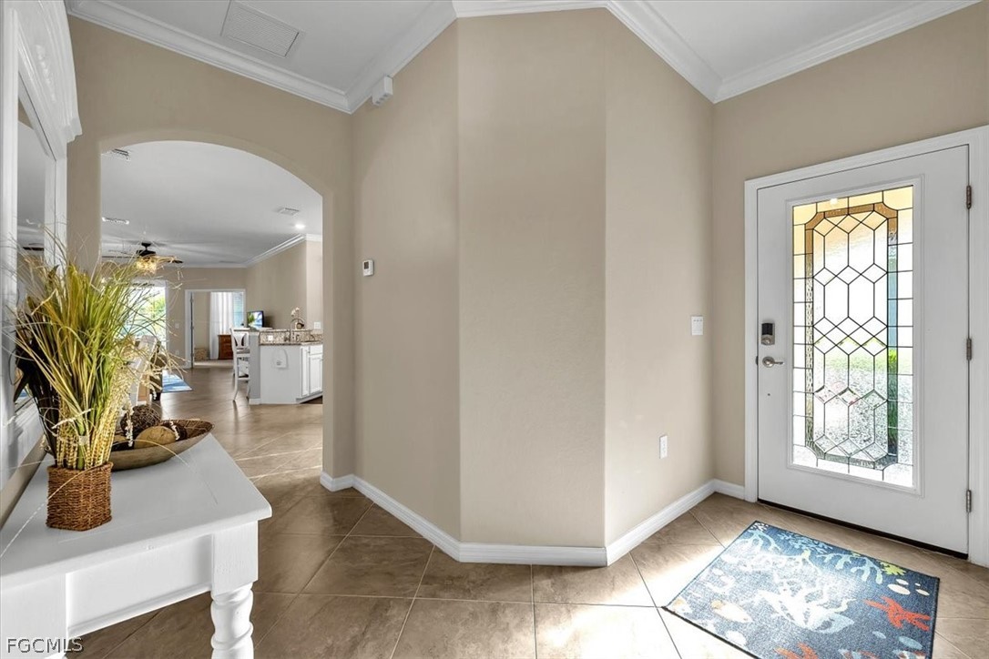 Welcome to this charming villa, formerly a model home, that is sure to capture your heart. This meticulously designed property boasts a perfect size, featuring 2 bedrooms and a den. The 18" diagonal tile flooring adds a touch of elegance. The kitchen is a bright and inviting space, adorned with white cabinets and a window that fills the room with natural light. The counters are all granite and fans and lighting have been updated. There is crown molding throughout and french doors to the den, which can be turned into a bedroom with the queen sofa bed and privacy shades. The garage has a work bench and epoxy flooring. The front entry is screened in and the screened in lanai has been expanded. You will love relaxing here and enjoying the landscaping and wildlife and privacy. This property is being offered TURNKEY, so just bring your toothbrush and move in! Pelican Preserve is a highly sought-after community for adults aged 55+. This vibrant community offers an array of amenities, including pickle ball, tennis, bocce ball, theaters, outdoor concerts, a spa, fitness center, and walking trails and more! To top it all off, Pelican Preserve boasts 27 holes of fantastic golf, with optional memberships available. Embrace the Florida Lifestyle and start enjoying all that this remarkable community has to offer.